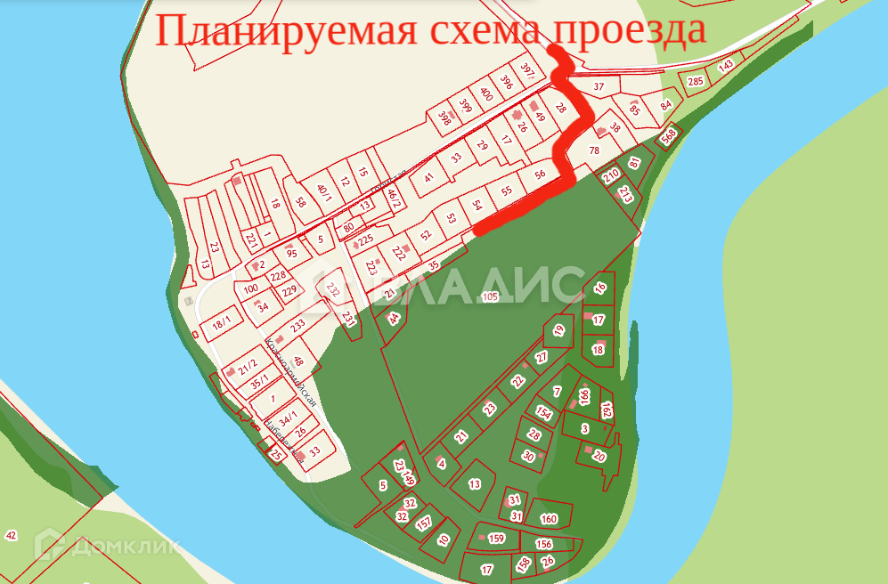Внимание! Дороги до участка нет! Есть возможность отсыпки дороги со стороны 105 участка. С другой стороны, на прилегающих участках, требуется соглашение с собственником по проезду!