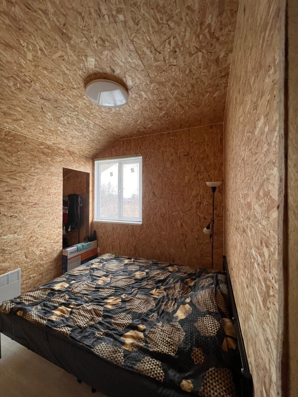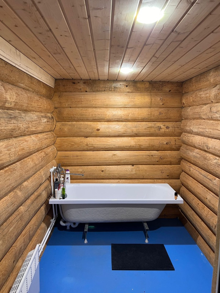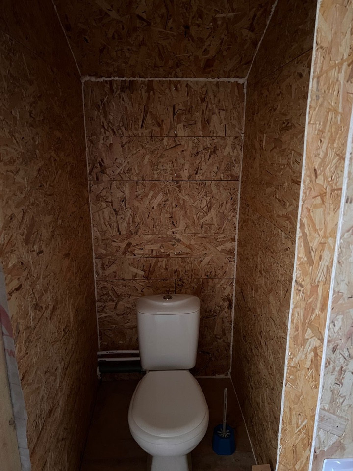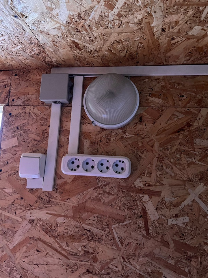 Внутри сделана отделка , можно закрыть чистовым вариантом ( например вагонкой ) / сделана маленькая спальная / везде есть электричество и сделана разводка по воде , горячая холодная ( котлы 100+100 литров )