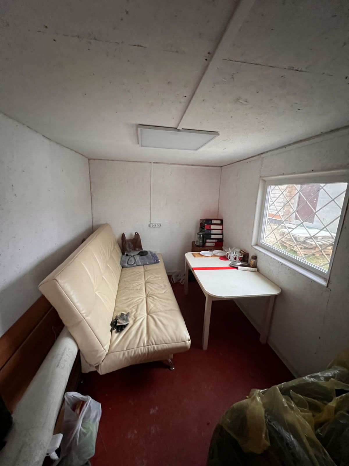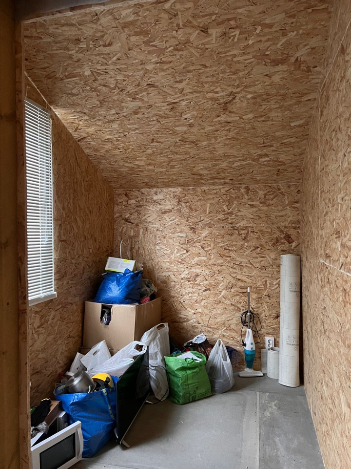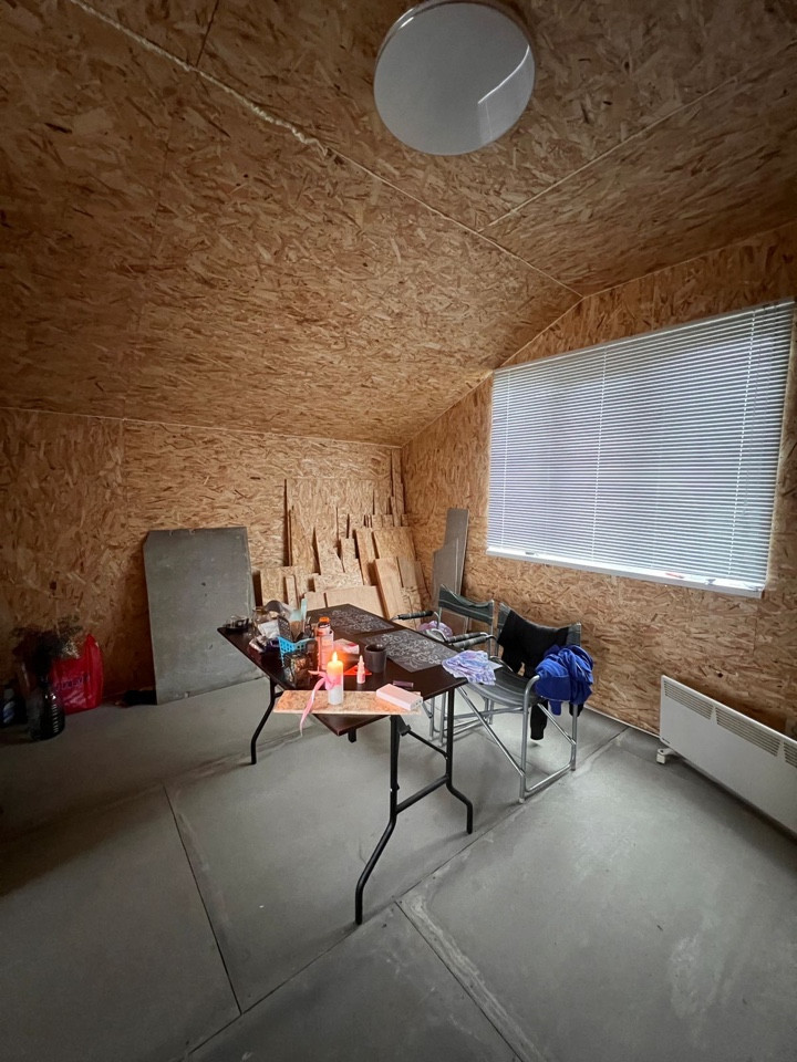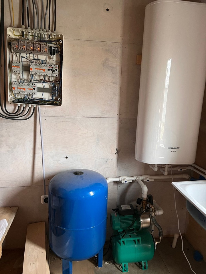 Внутри сделана отделка , можно закрыть чистовым вариантом ( например вагонкой ) / сделана маленькая спальная / везде есть электричество и сделана разводка по воде , горячая холодная ( котлы 100+100 литров )
