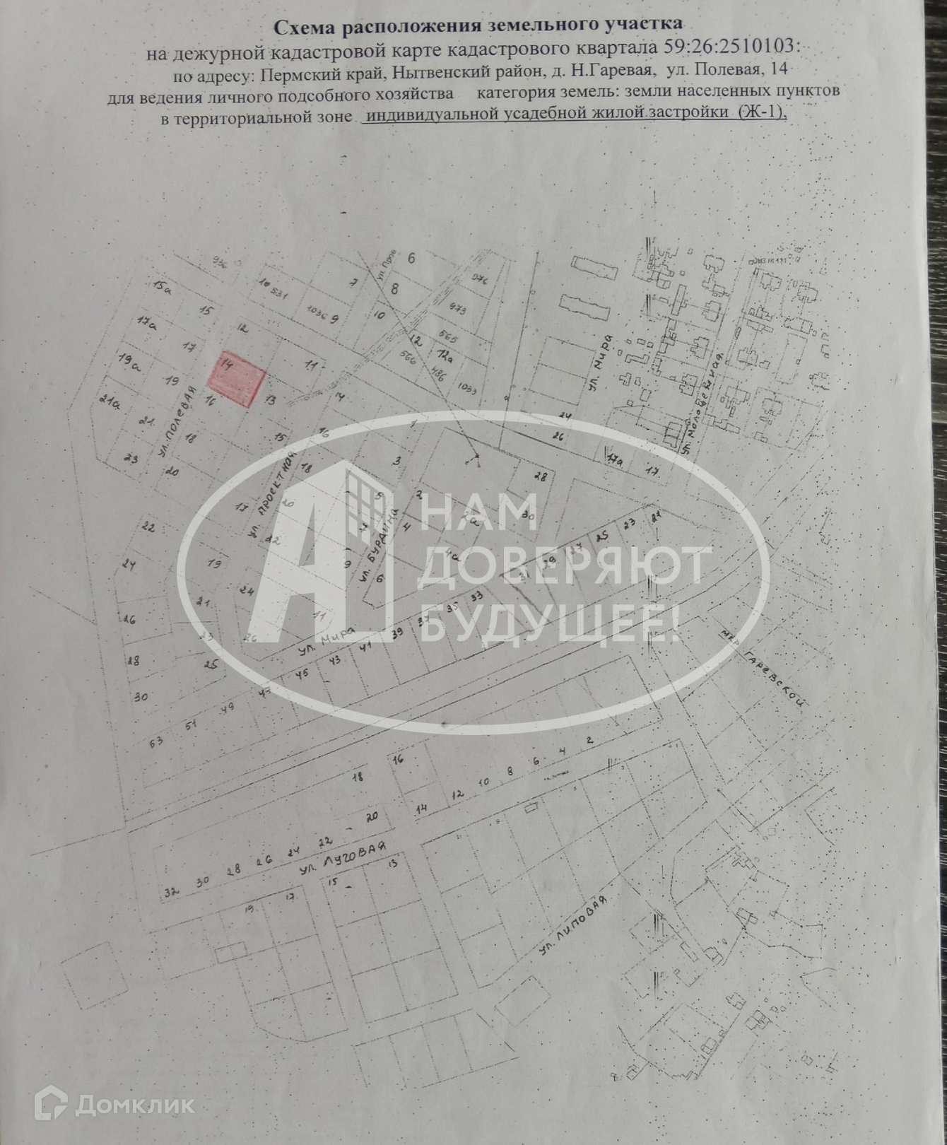 Участок под ИЖС, 20.02 сот. на продажу в деревне Нижняя Гаревая, Полевая улица, 14