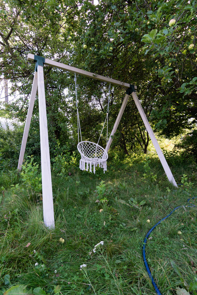 Качели которые располагаются в теньке.