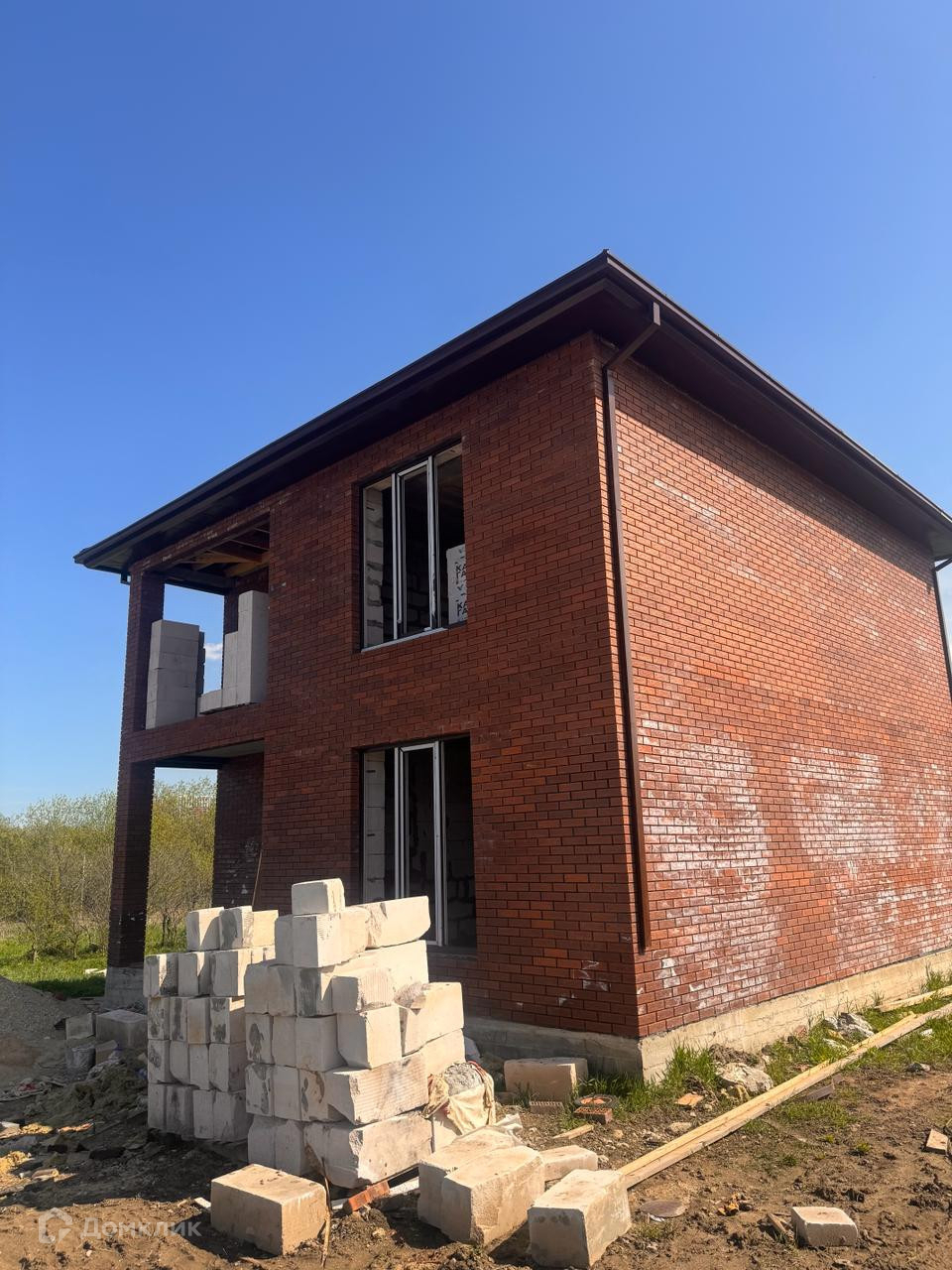 Дом из газосиликатного калужского блока, облицовка браеровский кирпич.