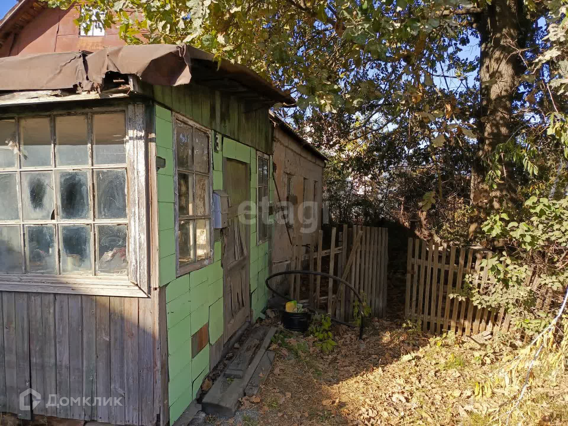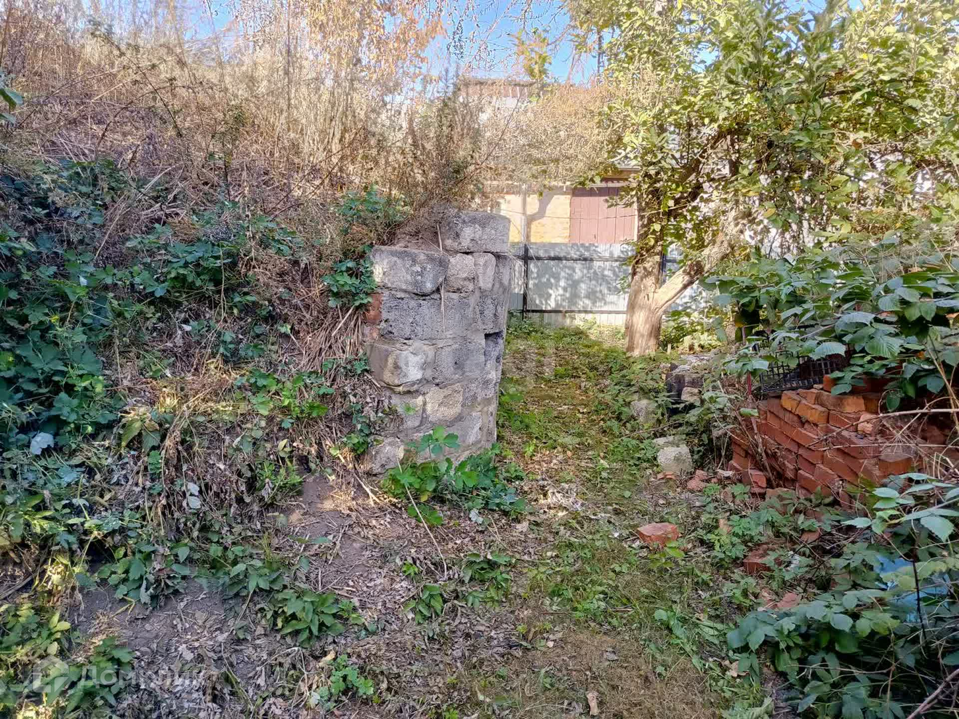 О участке: На участке есть кирпичный гараж, сарай и подвал. Территория разделена на сад и огород. В саду есть много яблоневых деревьев, сливы, айва, смородина, вишня, малина, ежевика. Подъезд есть только с одной стороны, с другой стороны территория закрыта.