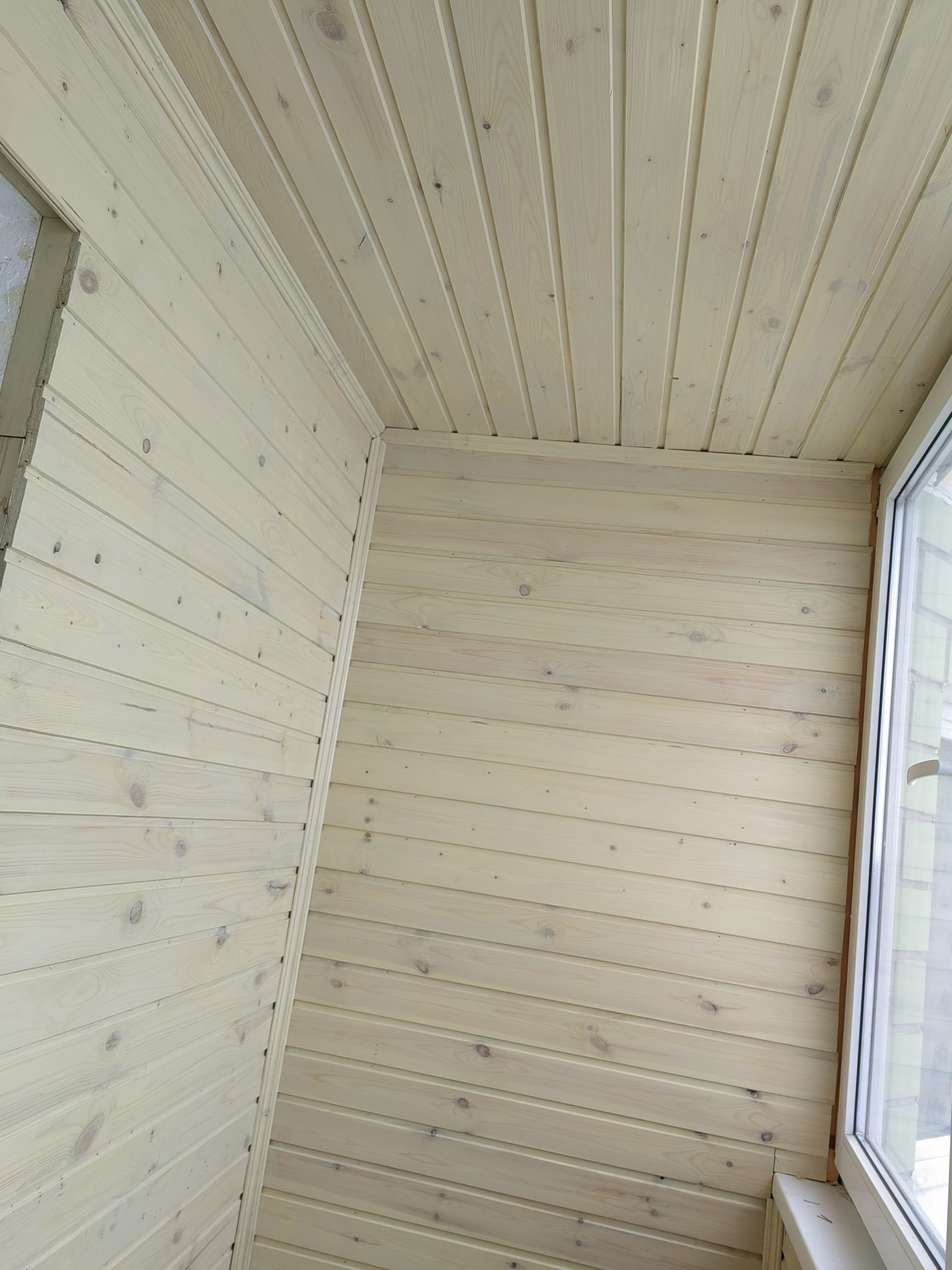Балкон застеклён, утеплен и обшит вагонкой.
