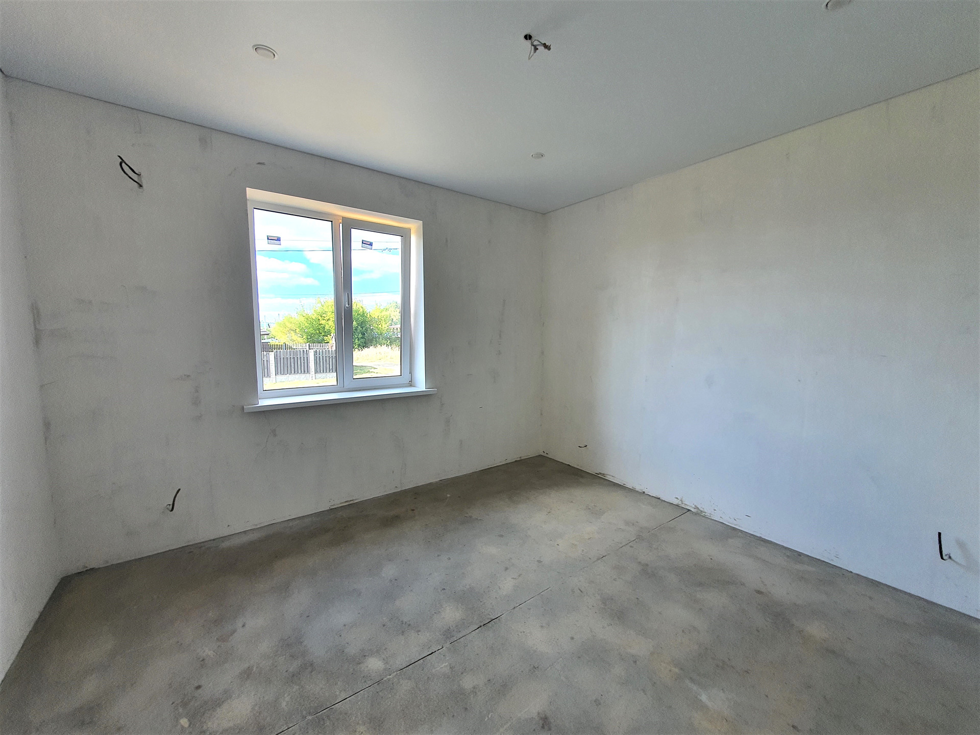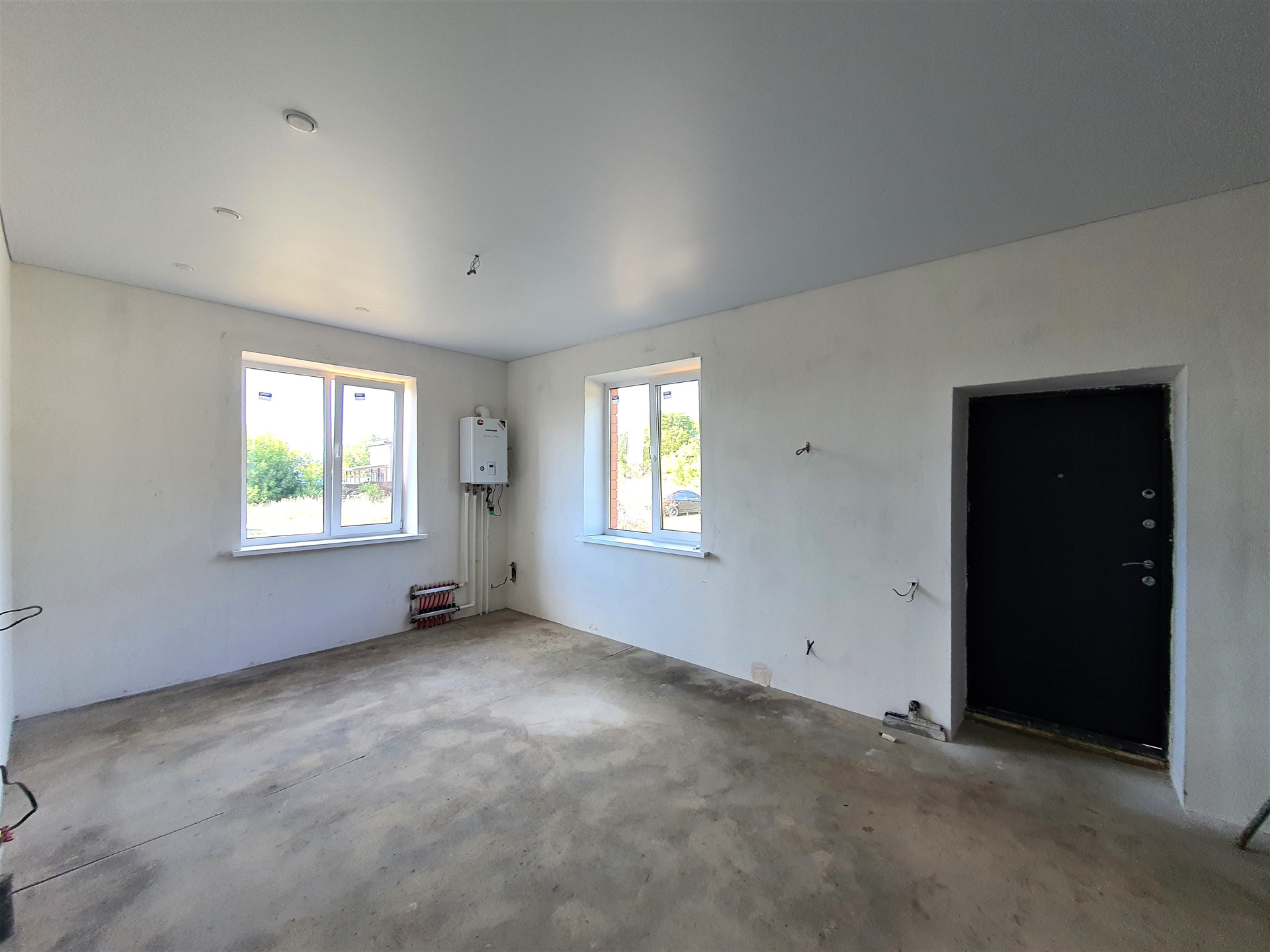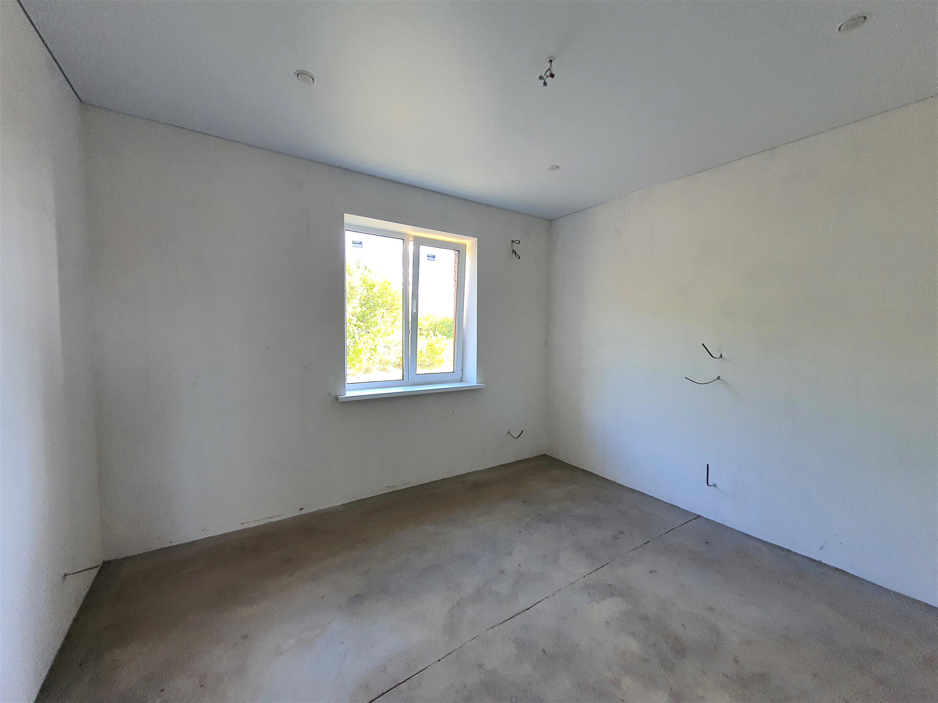 По периметру всего дома проложена система «ТЕПЛЫЙ ПОЛ», установлены НАТЯЖНЫЕ ПОТОЛКИ с точечными светильниками и выводами под люстры, стены оштукатурены под обои или декоративную штукатурку.