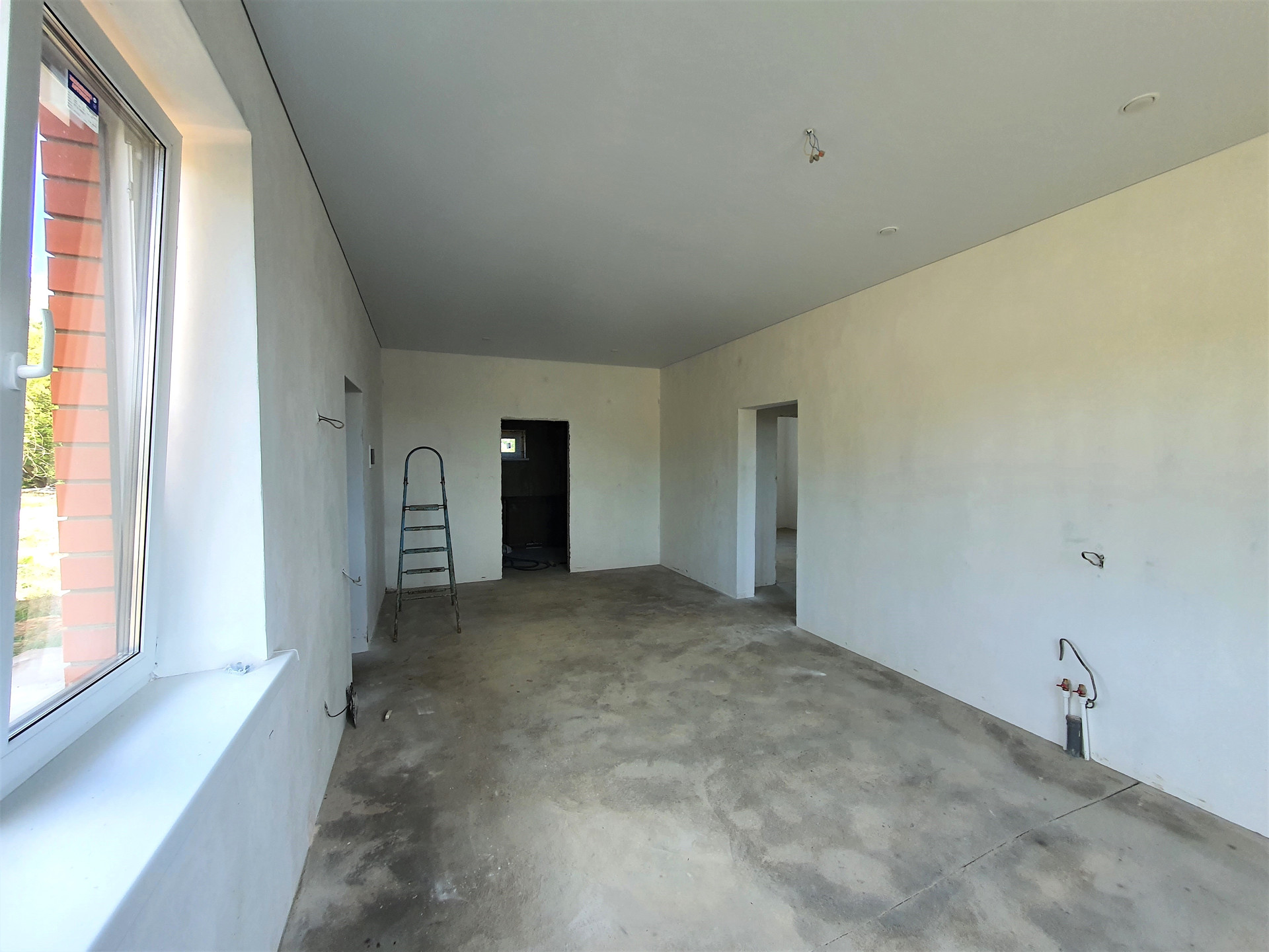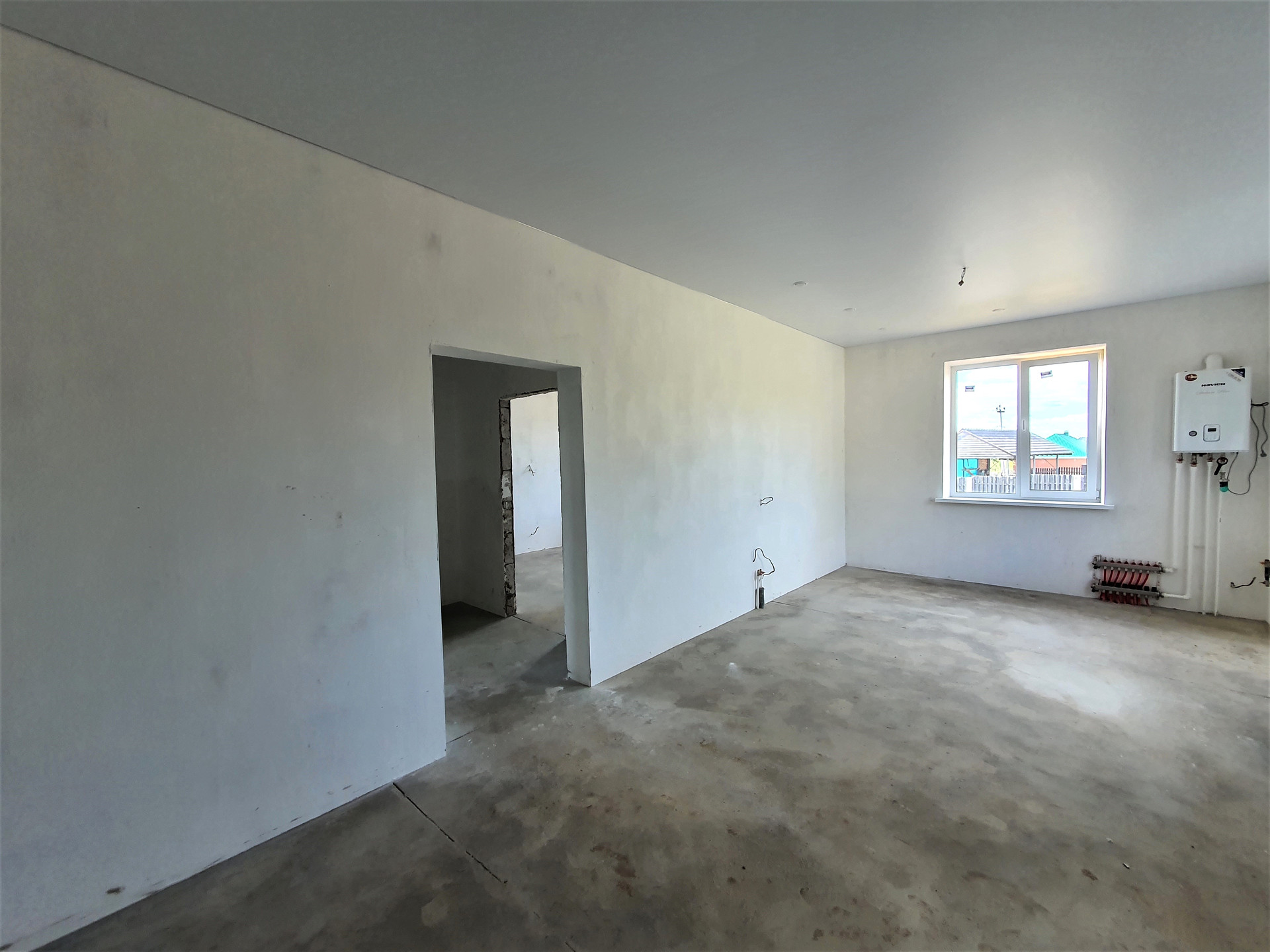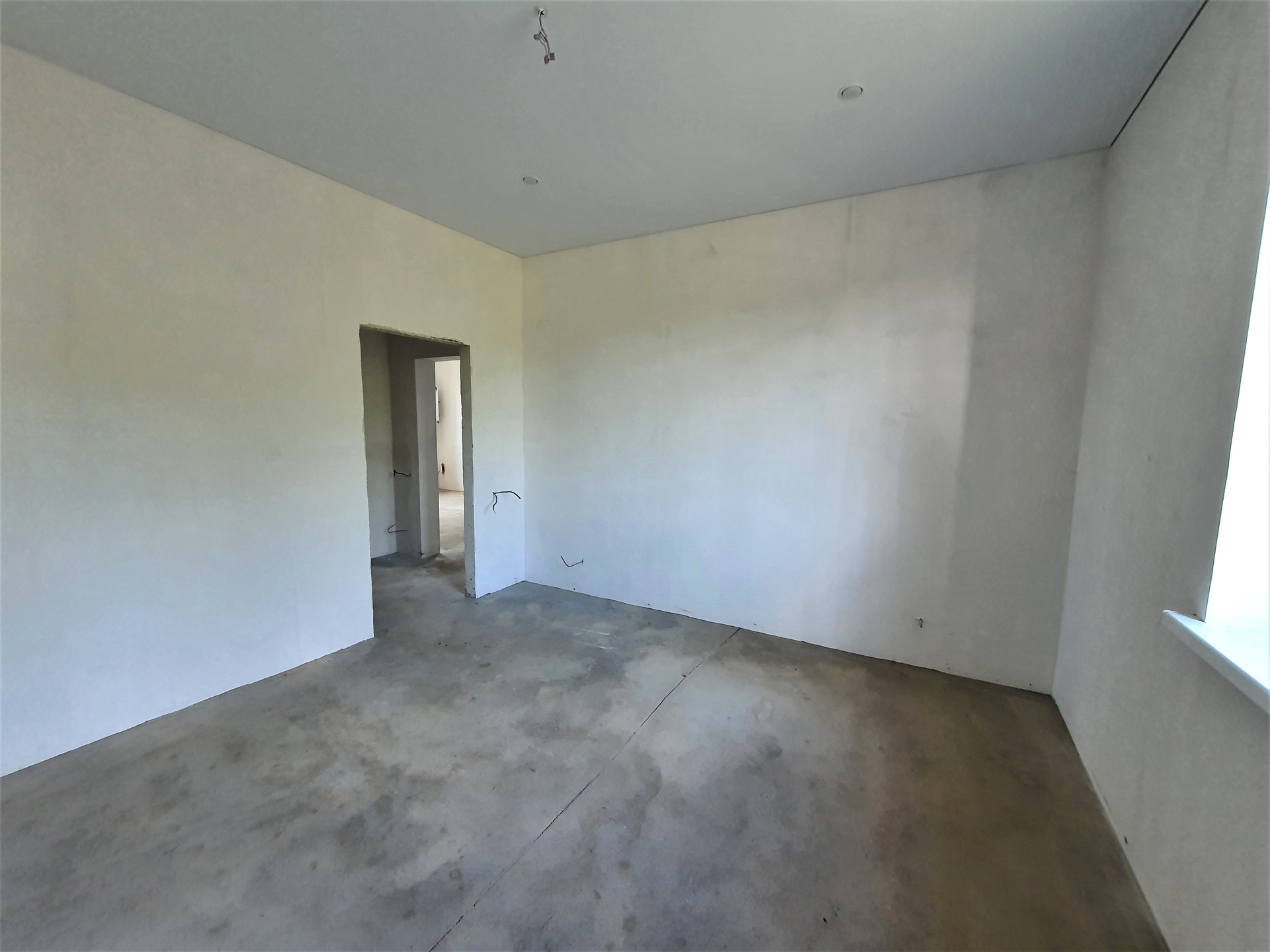 По периметру всего дома проложена система «ТЕПЛЫЙ ПОЛ», установлены НАТЯЖНЫЕ ПОТОЛКИ с точечными светильниками и выводами под люстры, стены оштукатурены под обои или декоративную штукатурку.