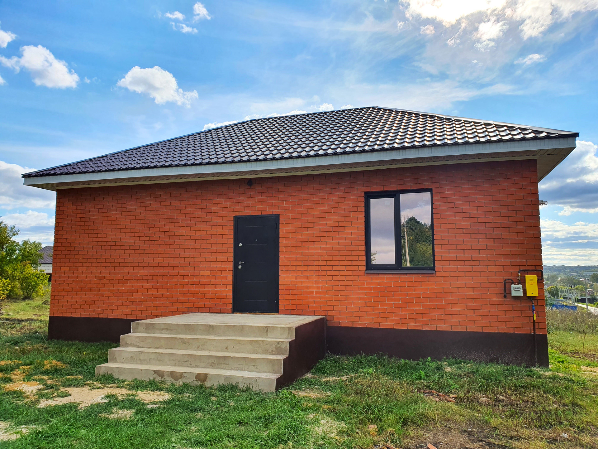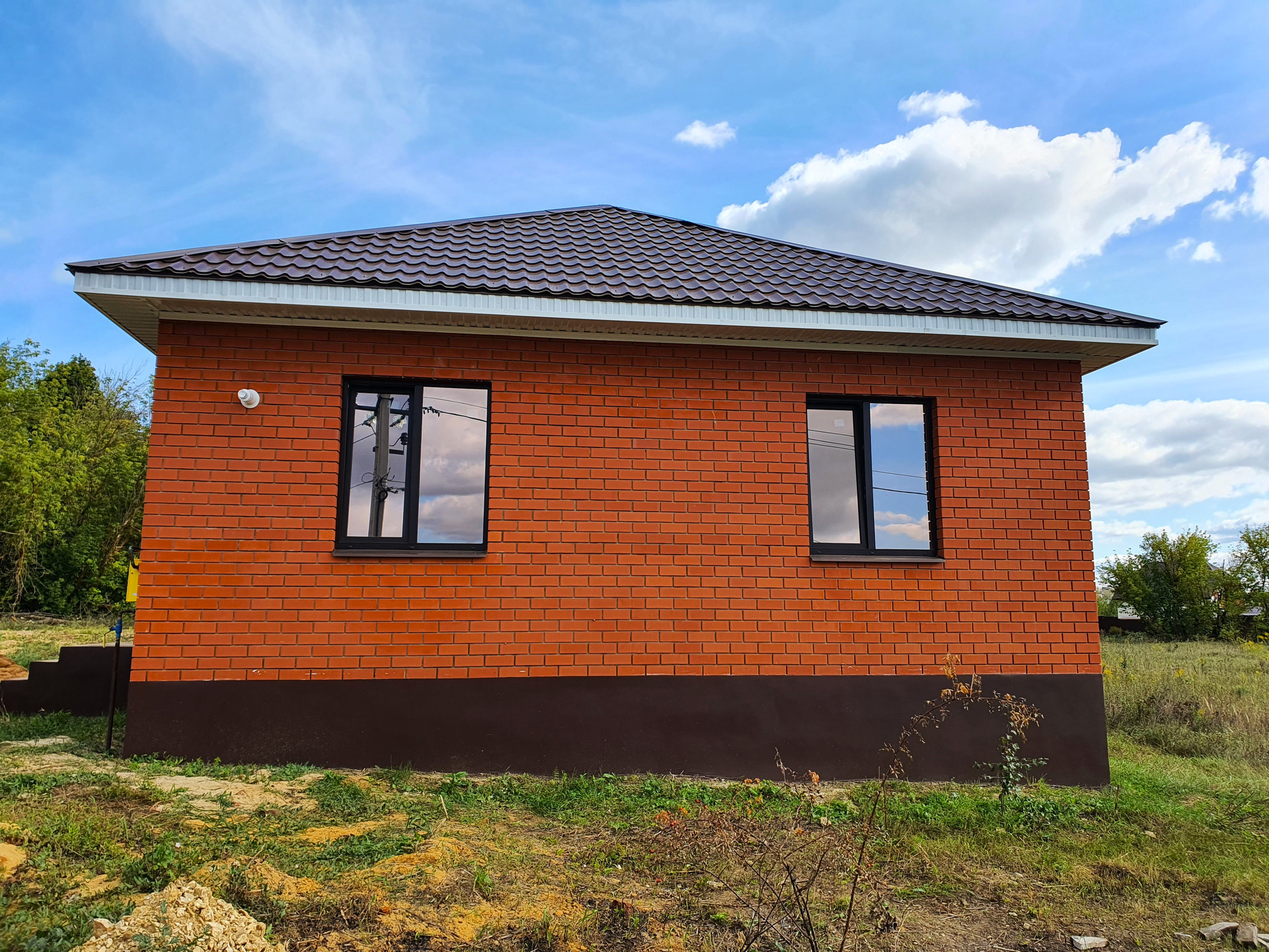 Дом построен из КАЧЕСТВЕННЫХ МАТЕРИАЛОВ: фундамент – ленточный со сваями; материал стен – пеноблок (сверху облицован кирпичом); крыша – металлопрофиль; установлены пластиковые окна с ламинацией и тонированными стеклопакетами (с подоконниками и отливами); хорошая дверь-сейф.