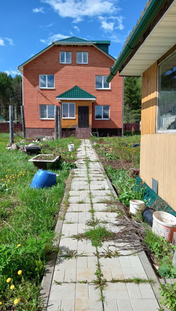 Продается 3-х этажный коттедж 300 кв м. + земельный участок 23 сот., который находится в д. Нижняя Вырка, ул. Тенистая, Калуга, Ленинский район. До Москвы по Киевскому шоссе около 200км, до Калуги - 14 км. Дом строился для себя, поэтому использовали только лучшее и строили от души. Стены изготовлены из пеноблоков, облицованы кирпичом (ширина стены 65 см), крыша: металлочерепица; перекрытия между цокольным этажом и 1-2 этажом - плиты.. 1-й этаж отделан (кухня и одна комната готовы к проживанию), 2,3 -й и мансарда - БЕЗ ОТДЕЛКИ. В доме удобная планировка, 7 раздельных комнат, 2 балкона, 2 входа. На первом этаже есть печь-камин. Остается мебель, газовая плита (Чехословакия). В санузле: душевая кабина, большая чугунная ванна. Цокольный этаж: техническое оборудование, кладовая, свободное помещение (можно сделать летнюю кухню). Сбоку дома пристроен гараж. На участке построена двухэтажная баня 6х4 м, с комнатой отдыха, с/у и застекленной верандой. Баня отделана дорогими породами дерева: комната отдыха 4х3м, обшита кедром, моечная 2х3м - из лиственницы (пол и стены), парилка из липы, ополок из абаш (африканский дуб). Перед баней подготовлено место под бассейн/пруд: вырыт котлован, каркас из бетонных плит. Также есть летний душ и туалет ( унитаз, проведена канализация). На участке имеются все плодово-ягодные культуры (яблони, груши, вишни, сливы, малина, ежевика, декоративные кусты, цветы). Круглогодичный подъезд, лучшие места Калужской области - сосновый бор и река Ока в 1 км. Уникальное расположение: недалеко от города в лесу. До улицы Ген. Попова - 10 минут езды. Подходит под ипотеку и все виды сертификатов.