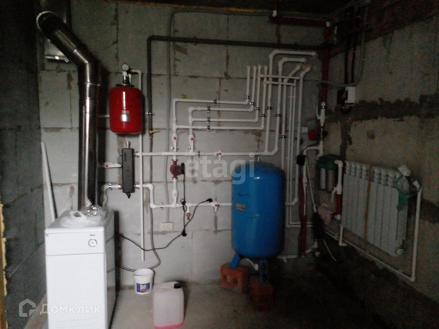 Большая часть 1-ого этажа отделана, сделан отличный ремонт. Есть большой камин, диван, кухонный гарнитур, газовая плита. Прекрасно отделанная ванная комната с душевой кабиной и ванной. По всему дому проведено газовое отопление. На втором, мансардном и цокольном этажах сделана улучшенная черновая отделка. На участке расположена шикарная баня с мансардным этажом, летний душ. Есть котлован под бассейн или пруд (выложен плитами). На противоположной от главного дома стороне участка находится ещё один дом-баня (деревянный). Забор из профлиста. Два въезда с воротами. Есть разнообразные плодово-ягодные деревья и кустарники. Вокруг населённого пункта отличный грибной лес.