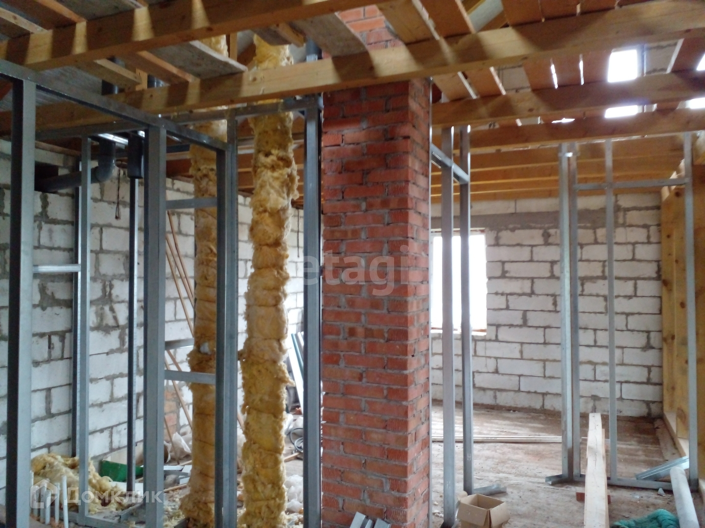 Облицовка дома кирпичная. Железобетонные перекрытия между 1-ым и 2-ым этажами, мансардное перекрытие деревянное.