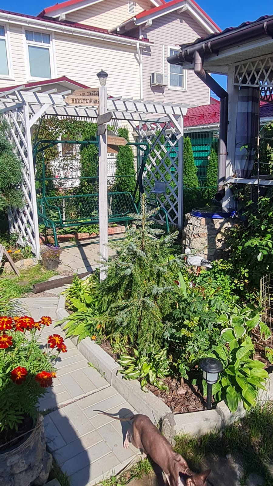 Сад полностью разработан, сделан ландшафтный дизайн, посажены: клубника, малина, ирга, голубика, смородина, жимолость, яблони, груши, крыжовник, туи, розы. Есть площадка для шашлыка, альпийская горка с прудиком и качель. Все остается в подарок новым собственникам. Сделан навес для машины и сухим входом в дом. Прямая продажа. Один взрослый собственник. Собственность более 5-ти лет.
