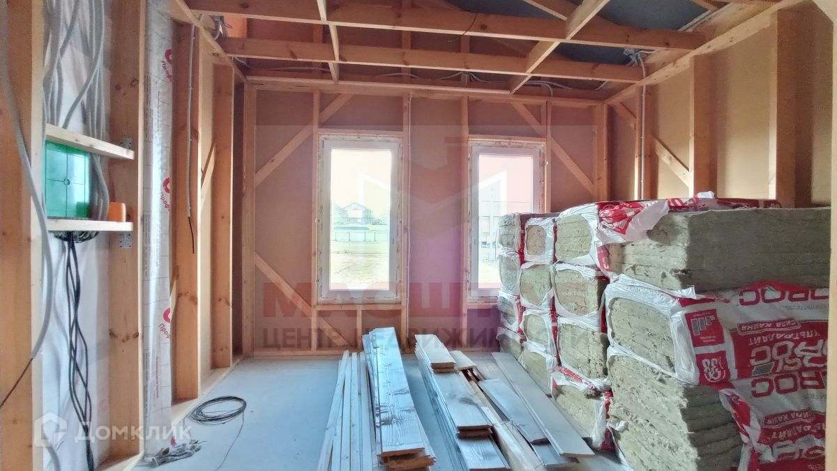 Внешняя отделка дома завершена. Сейчас идут работы внутри дома, возводятся перегородки и утепляются стены.