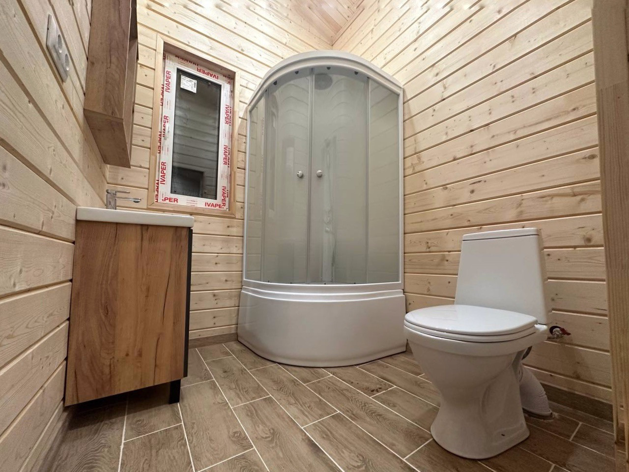 -Утепление каменная вата Rockwool 150 мм-Имитация бруса, хвойных пород-Кровля жесткая черепица-Террасная доска-Фундамент сваи ЖБИ