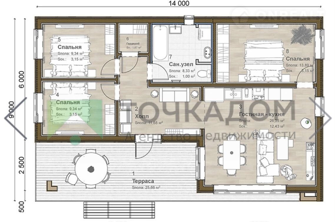 - 3 просторные спальни