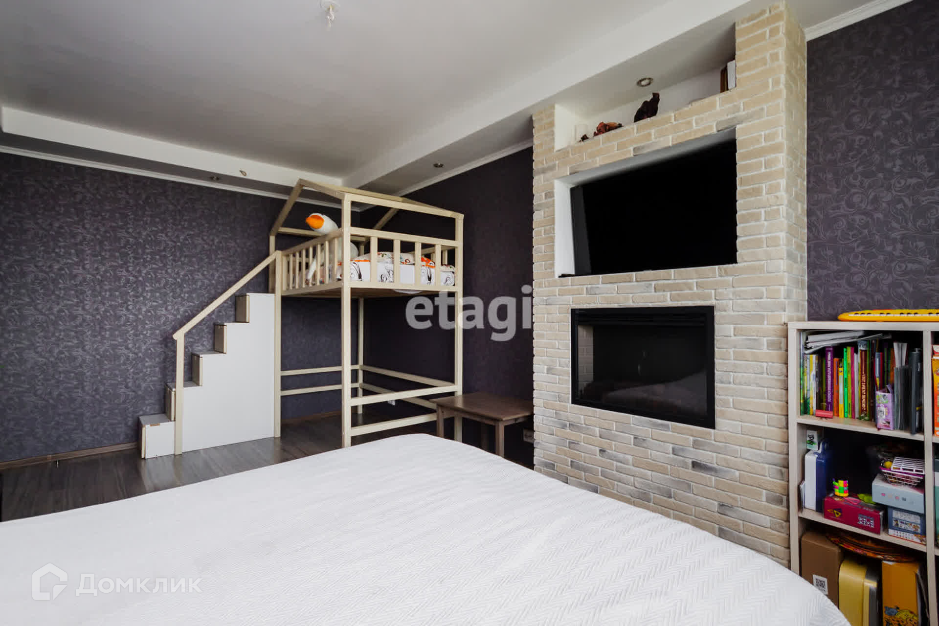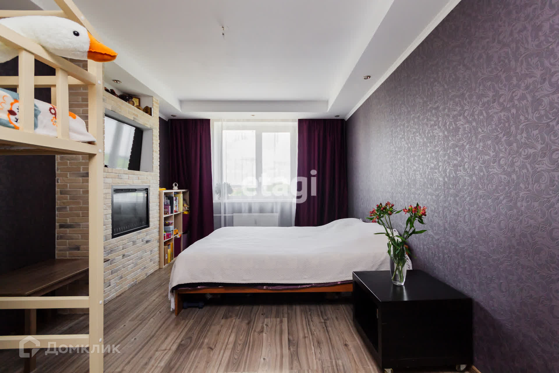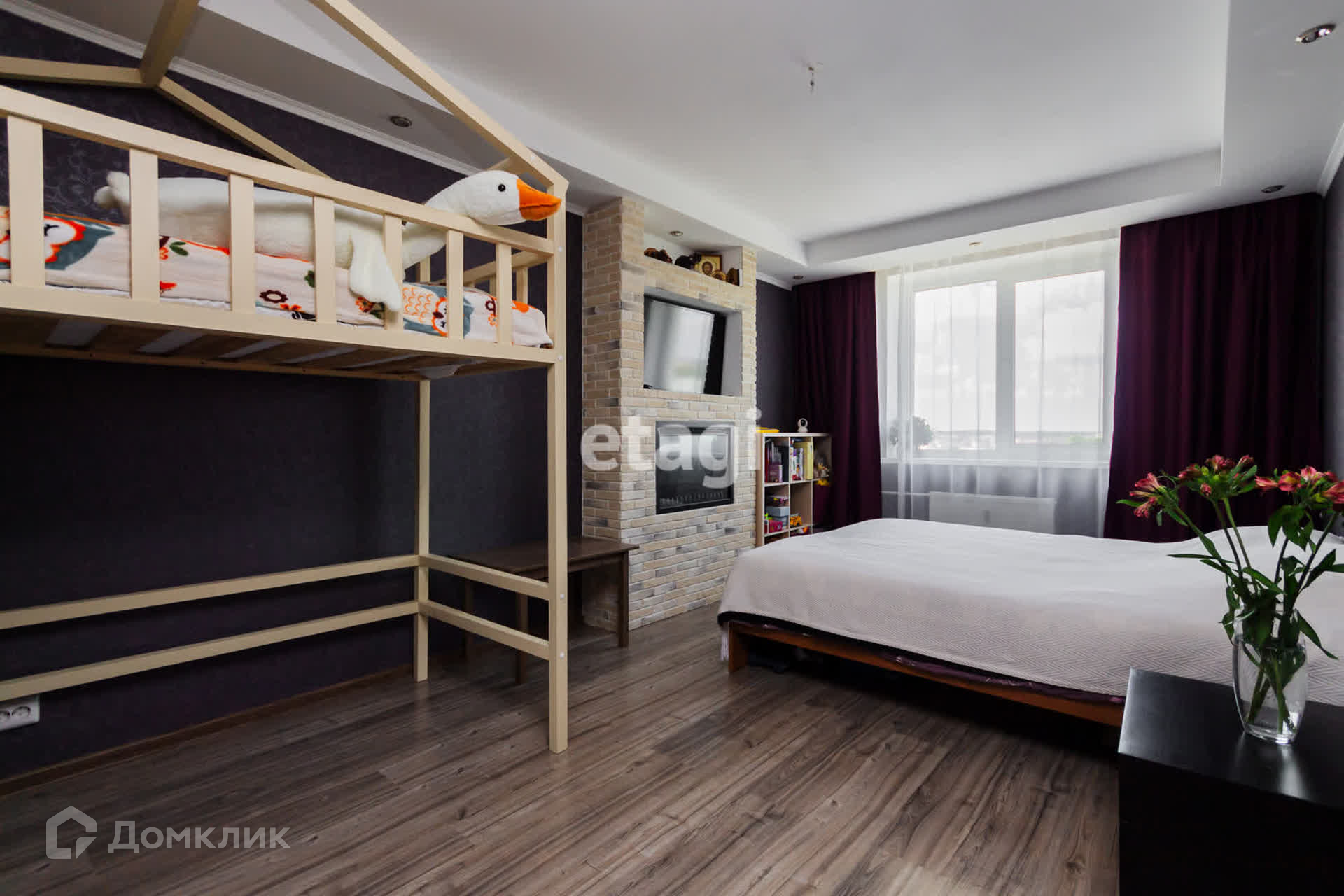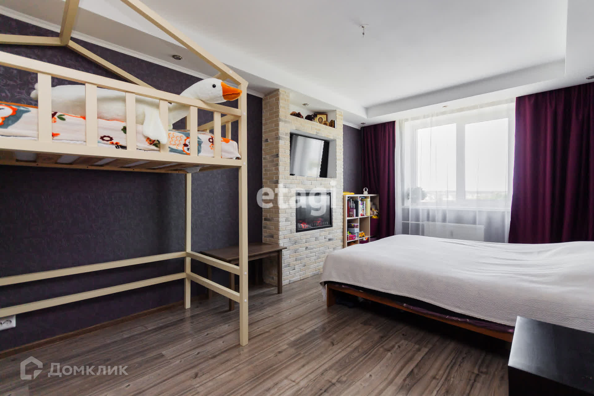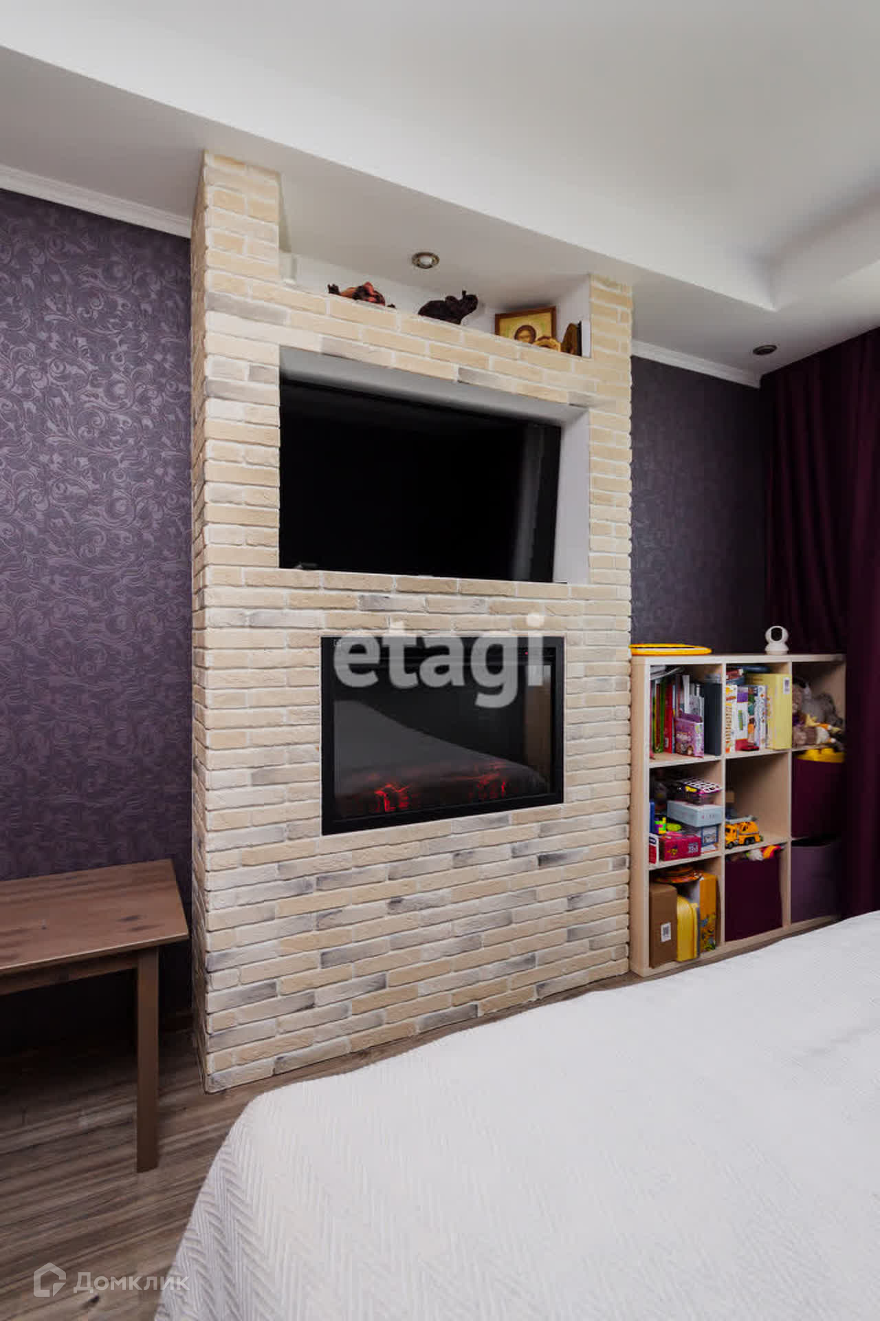 - Комната правильной формы — с декоративным камином и нишей под телевизор