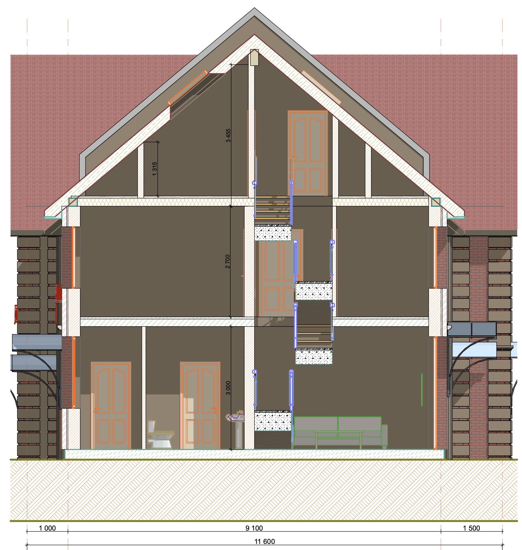 - Кровля выполнена из металлочерепицы, утепление 200 мм, плюс ещё 200 мм с расчетом на шумоизоляцию.