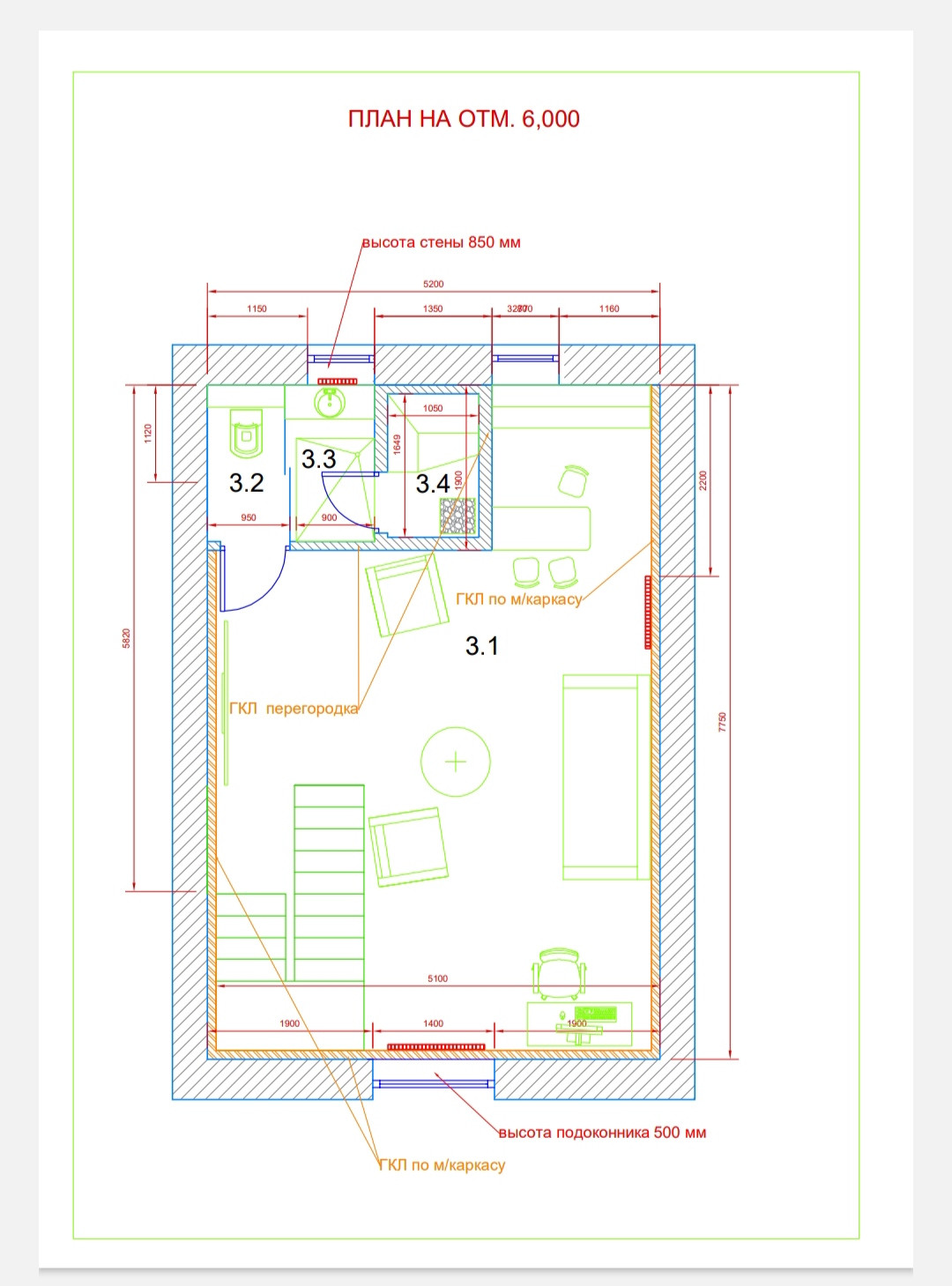 3 этаж (мансарда): зона отдыха и СУ, с выполненными подводами для всей необходимой сантехники, а также возможностью оборудования сауны.