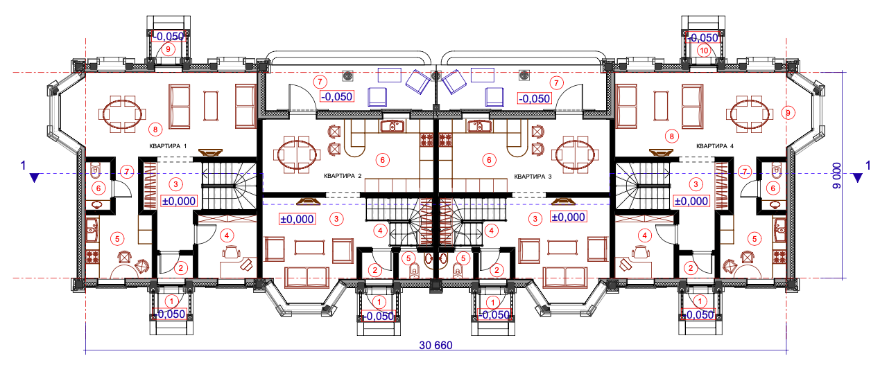 • фундамент – плита 300 мм (определено проектом в соответствии с расчетными нагрузками и составом геологии)