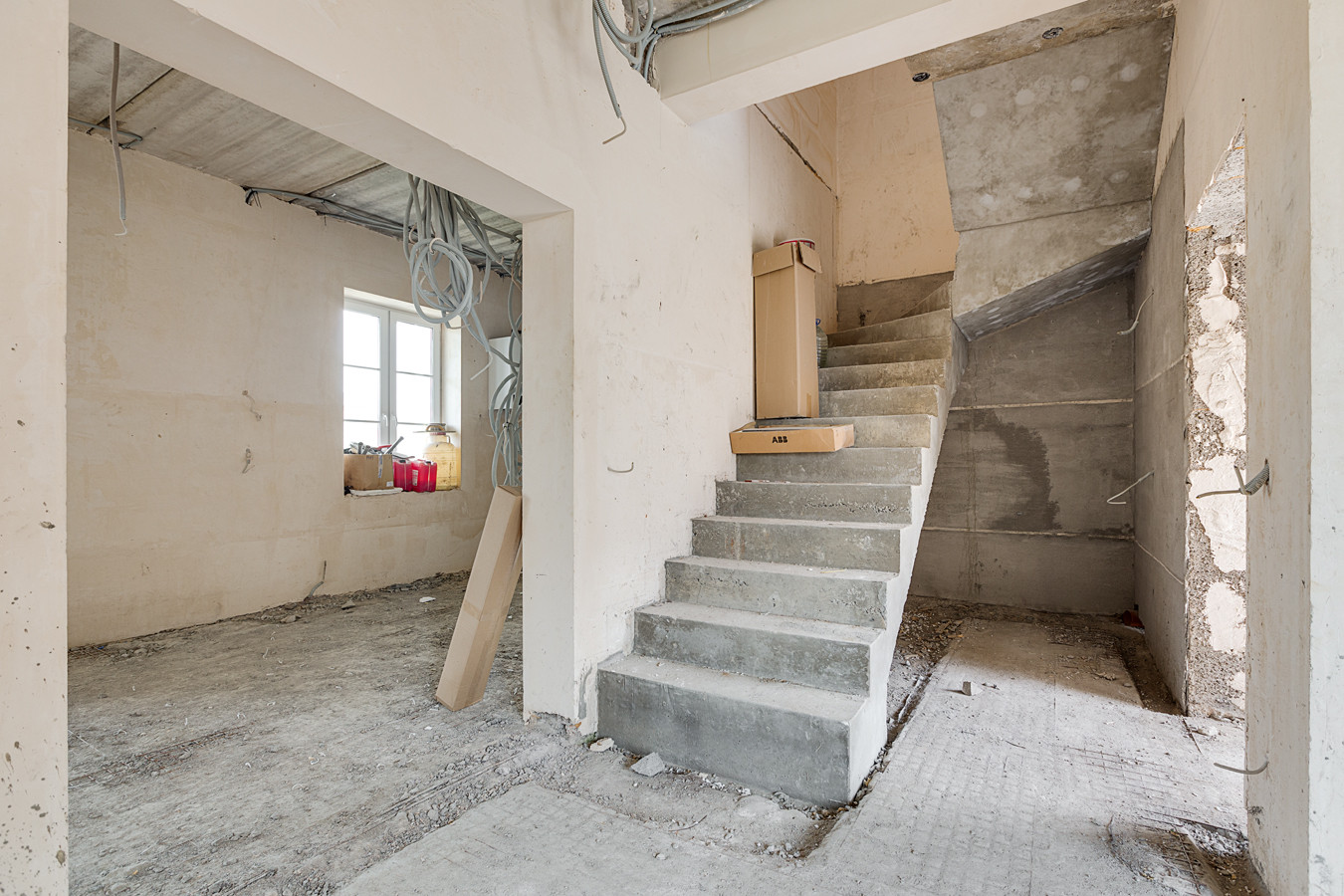 • внешняя отделка – материал отделки – термопанель ЕВРОПА, фасонные декоративные элементы, внутренняя отделка – стены и пол черновые под отделку, на 2 этаж выведена временная лестница