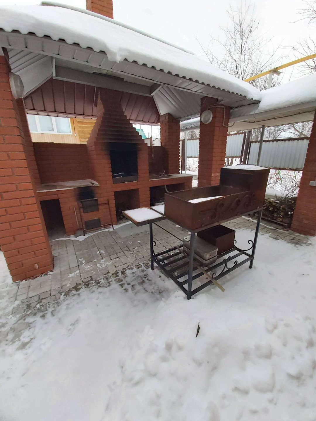 - Печь -мангал с мойкой под крышей,рядом дровня.