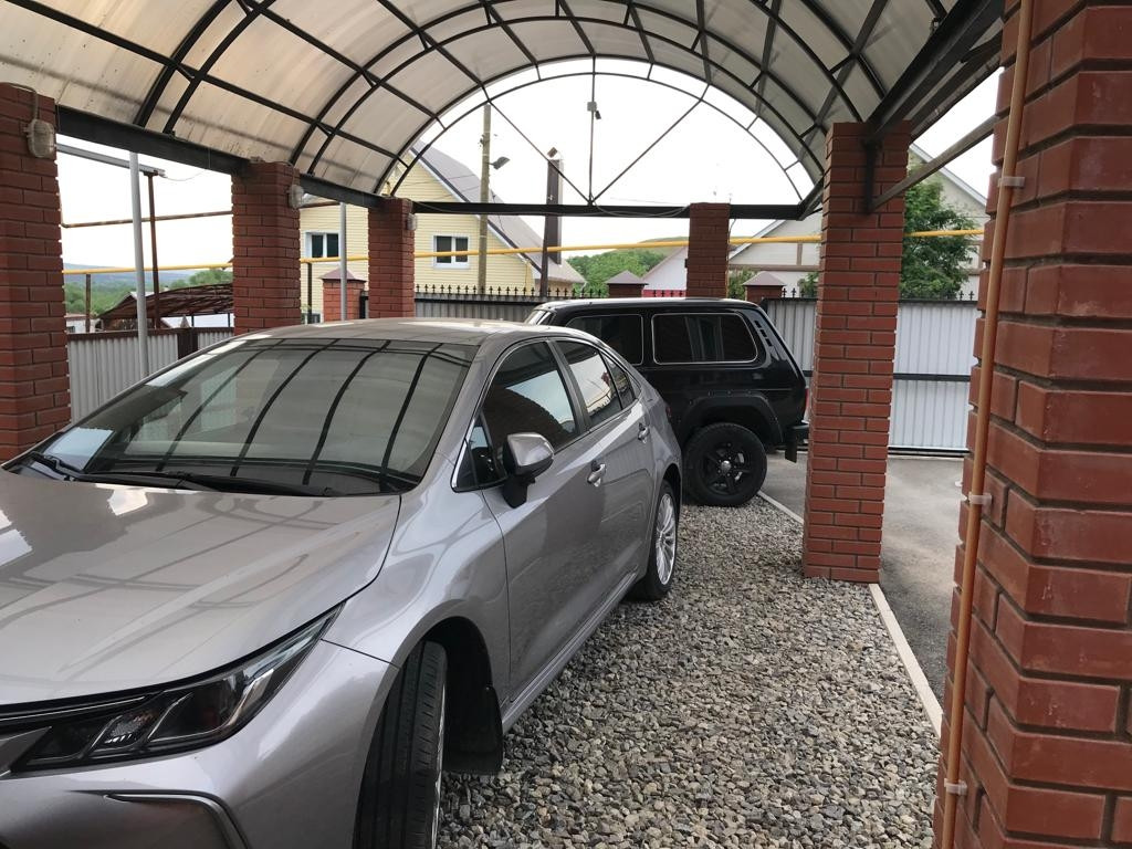 - Навес перед гаражом  на 2 машиноместа площадью 45 м2