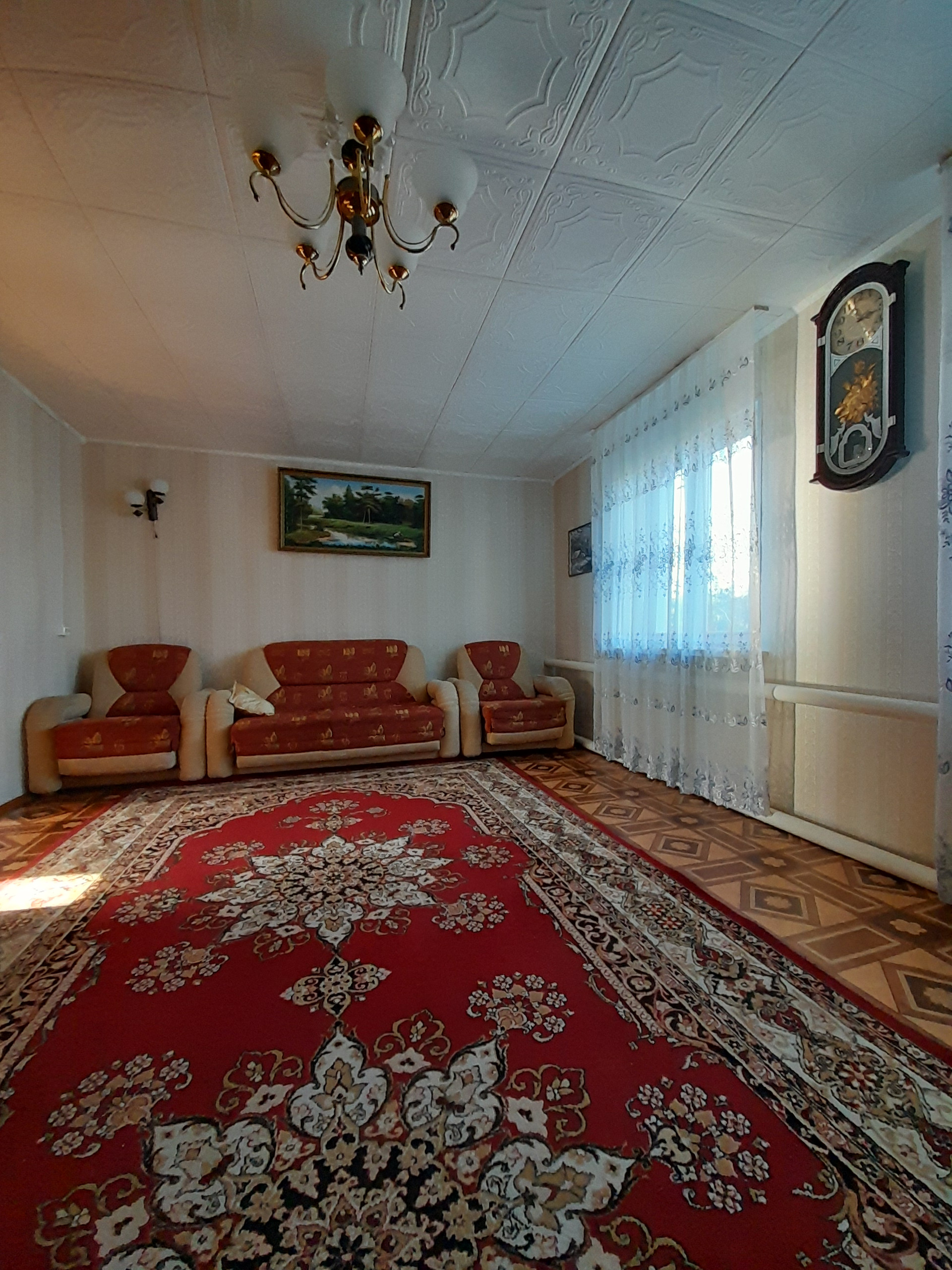 Дом щитовой обложен кирпичом. В доме :зал, 2 спальни, кухня, столовая, совмещенный с/у, прихожая, погреб (второй погреб на улице). На территории: гараж, баня, погреб. Дом расположен на центральной улице, асфальт до дома. В пешей доспупности продуктовый магазин. От города 10 км.
