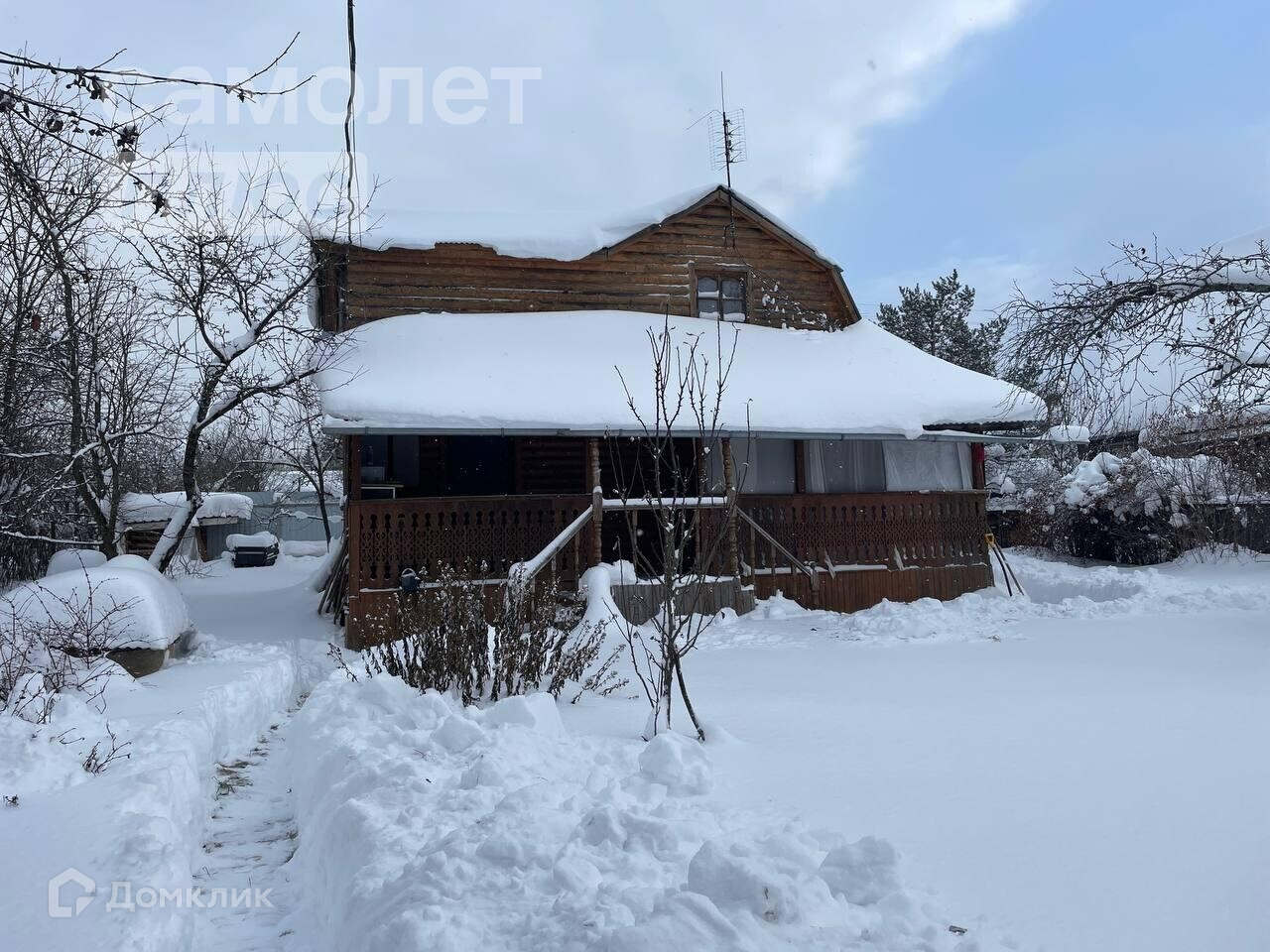 Большой двухэтажный дом построен из бревенчатого сруба 6*6. Фундамент ленточный. Второй этаж и веранда каркасный. В дом проложена труба водоснабжения и канализации. Дом отделан вагонкой и обработан льняным маслом. В жару в нем прохладно и комфортно. К дому примыкает прекрасная открытая веранда 3*9. Под верандой столбы.