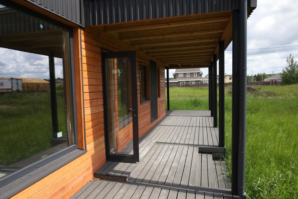 Особенность дома большая функциональная веранда где предусмотрено абсолютно все, от навеса для авто до возможности приготовить барбекю в дождливую погоду, на веранде можно позагорать летним солнечным днем, выпить по чашечке горячего кофе ранним прохладным утром, проводить закат с бокалом вина в уютном кресле под теплым пледом.