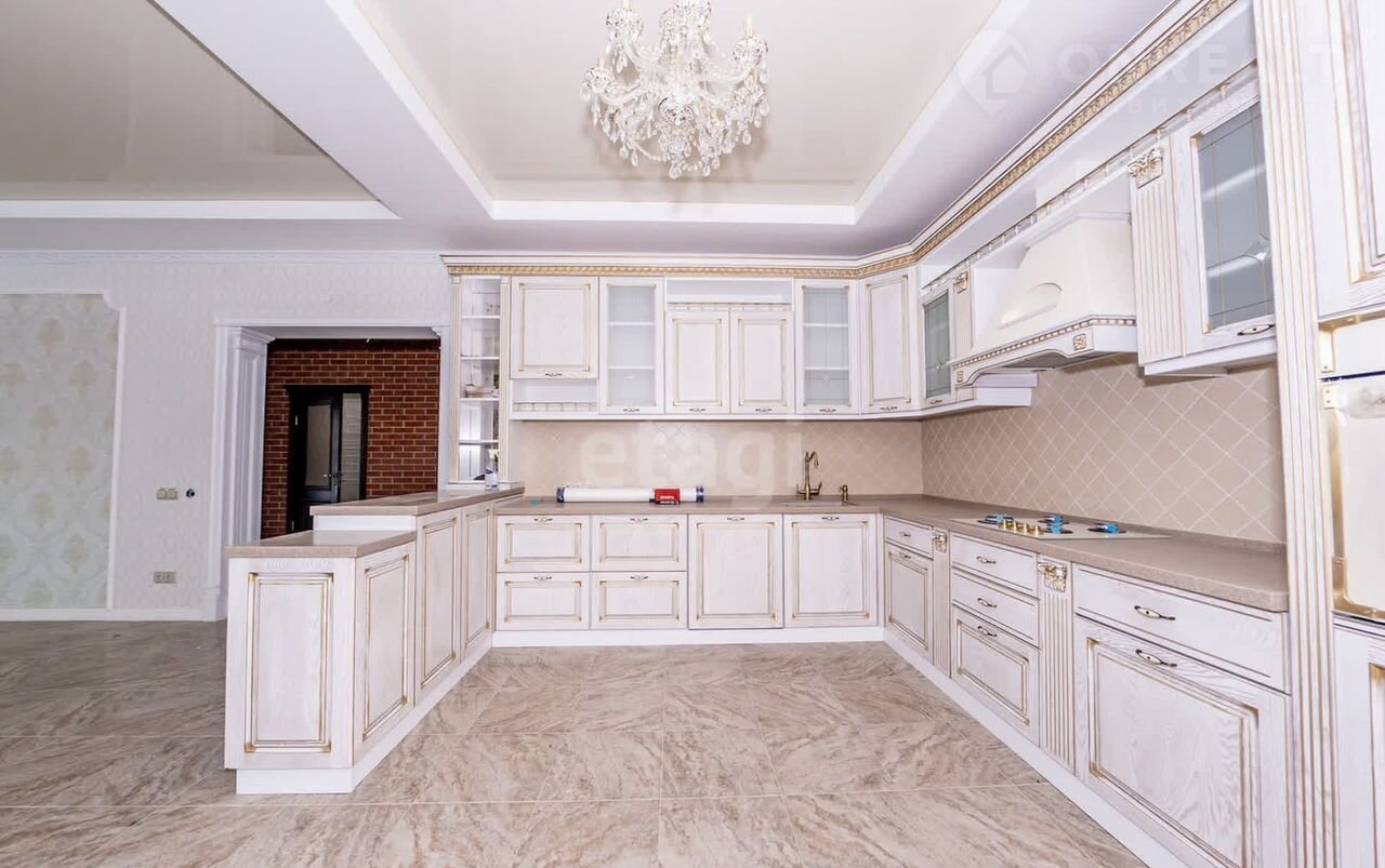 Вся техника и мебель входит в стоимость. В кухне остается кухонный гарнитур, выполнен из массива дуба по дизайнерскому проекту со всей встроенной техникой фирмы Купперсберг. На потолке дорогие люстры из богемского хрусталя.