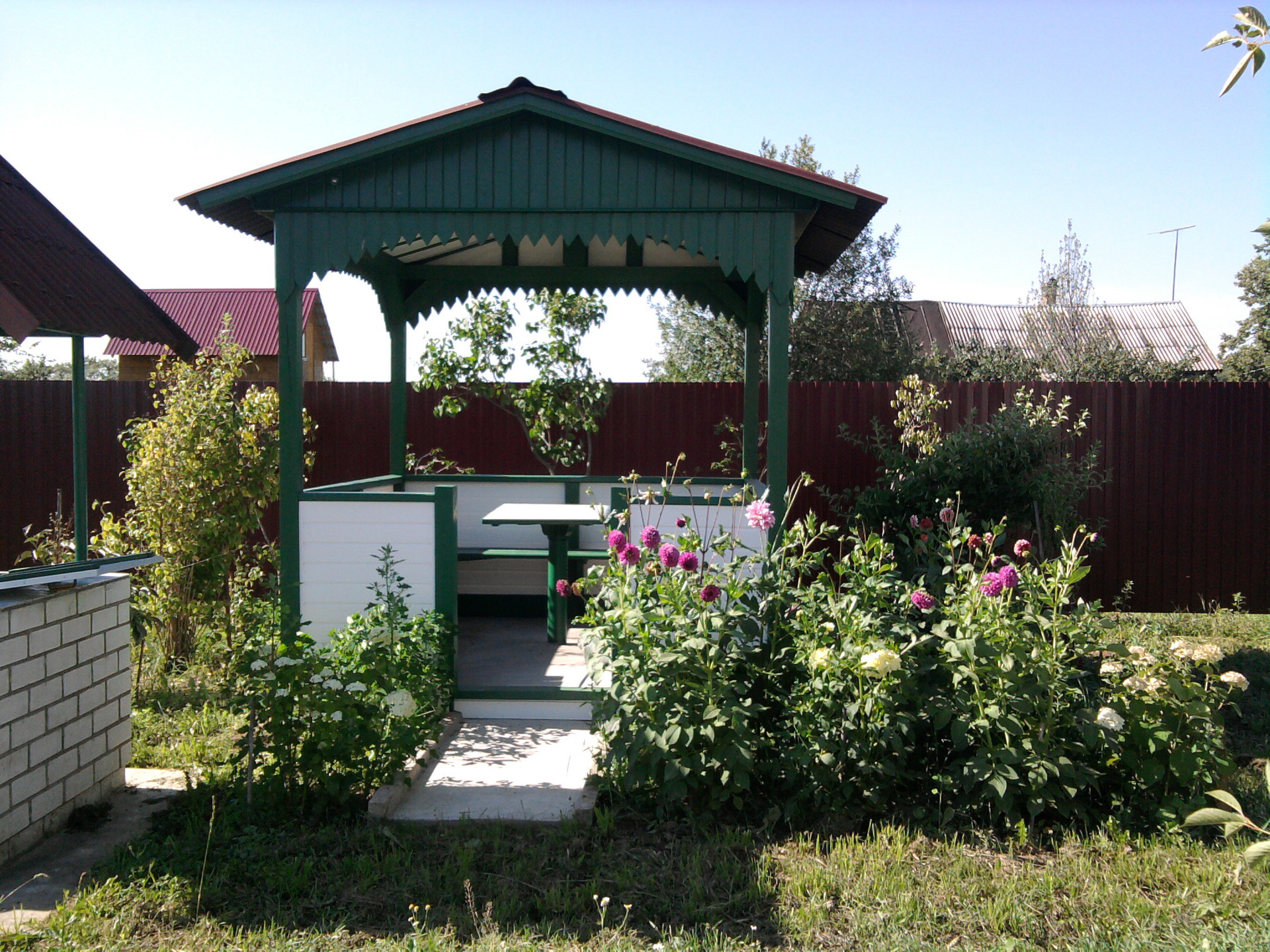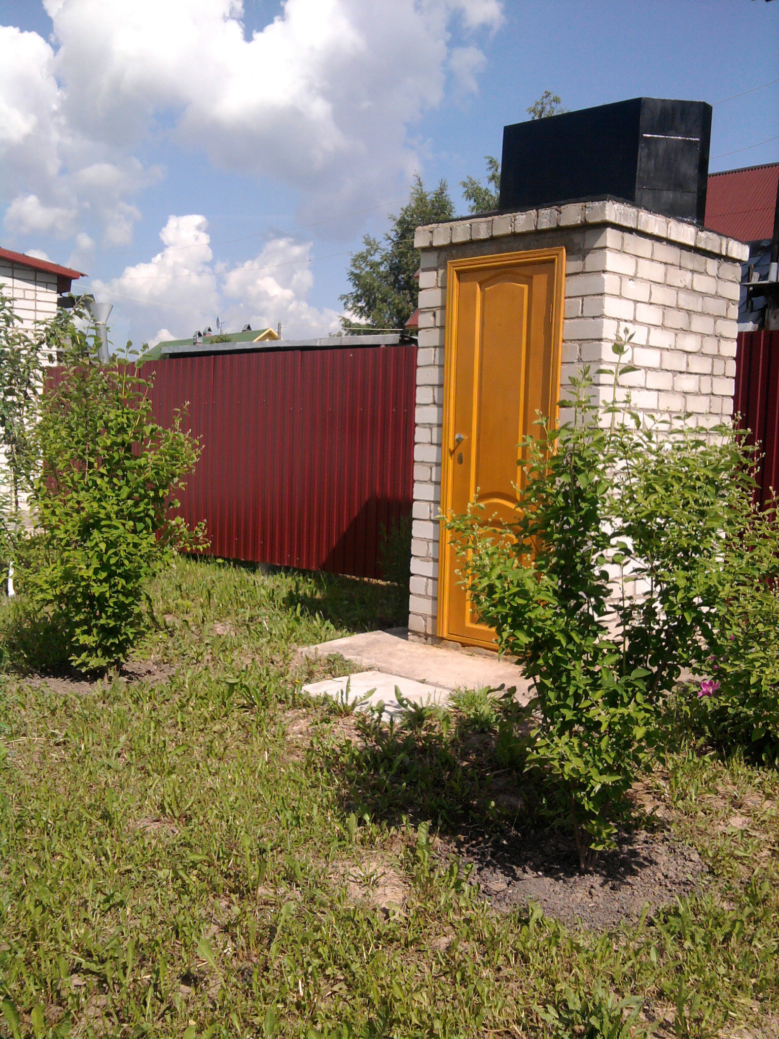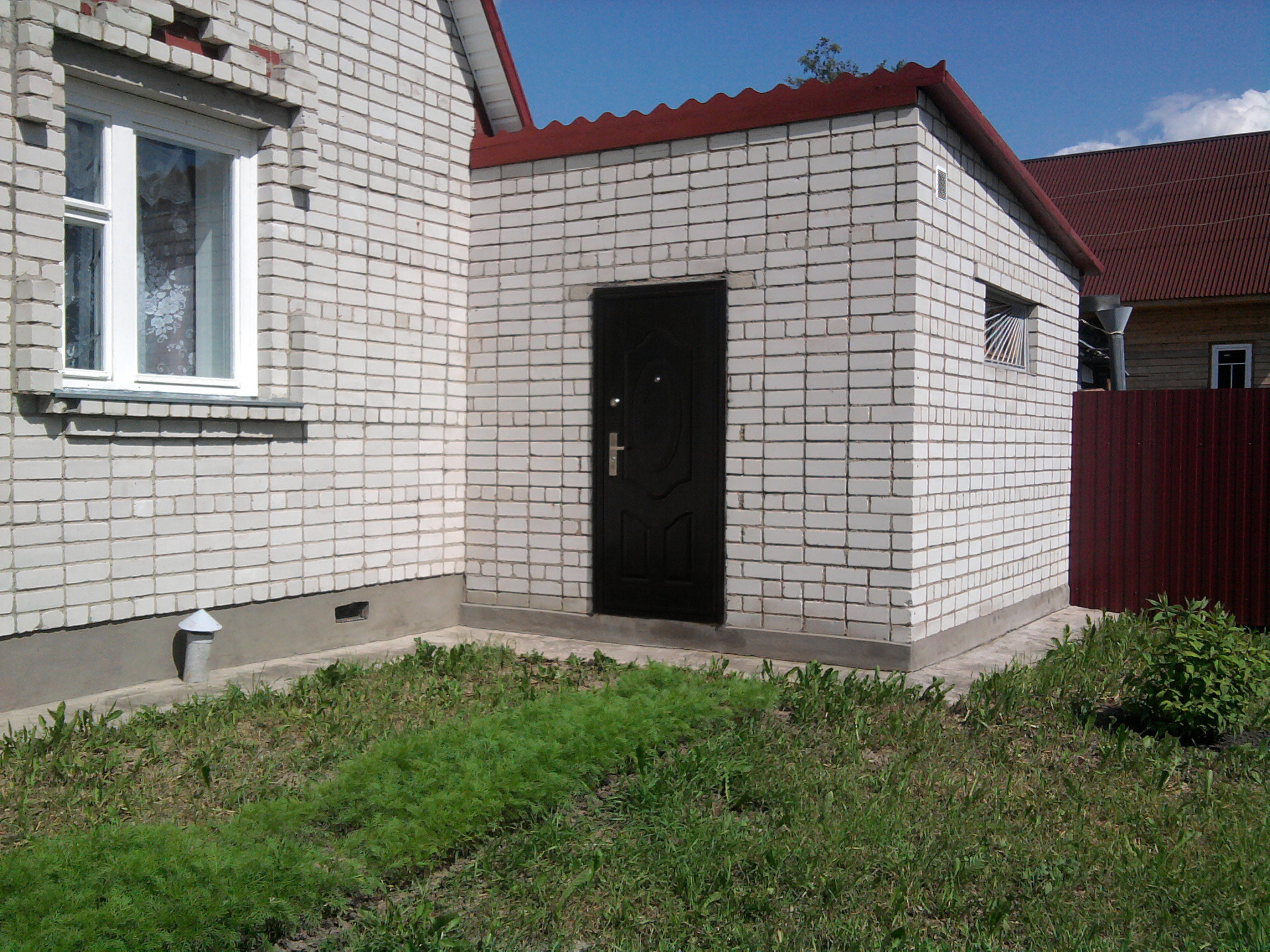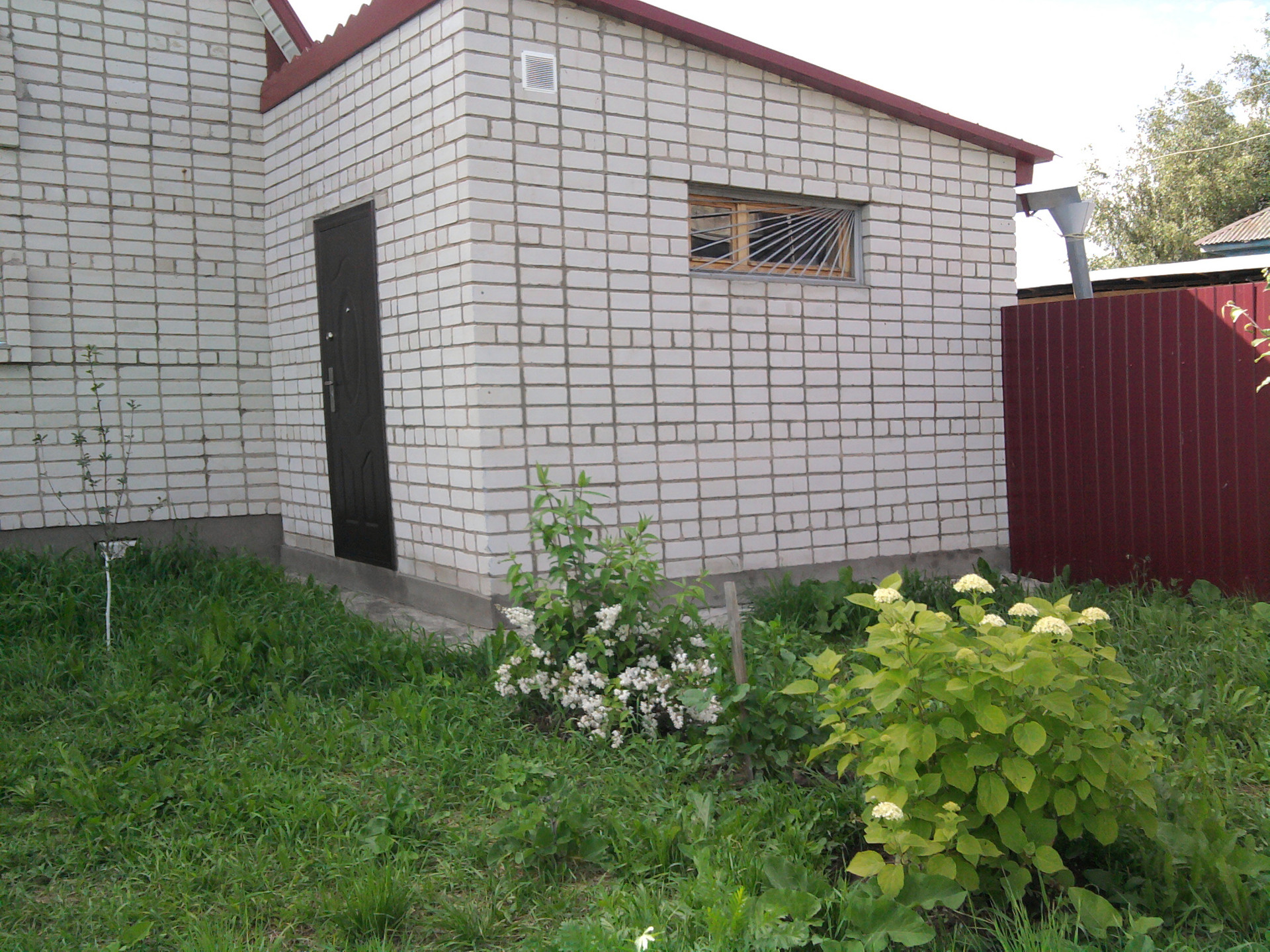На участке 15 соток расположены: баня - сауна, кирпичная, обшита деревом,  летний душ; беседка; теплица; колодец глубиной 11 м.; выгребная яма глубиной 5 м.; плодово-ягодные насаждения, прекрасный сад с цветами, груши, яблони, урожай клубники, с теплицы хозяйка собирает отличный урожай овощей! Забор из профлиста; крыша покрыта  ондулином. В доме электричество; отопление - печное и конвекторное; есть камин; подведена холодная и горячая вода; канализация. Дом продается с мебелью и бытовой техникой. Кухня оснащена новым холодильником, электропечью; есть новая стиральная машина. Все условия для проживания круглый год.