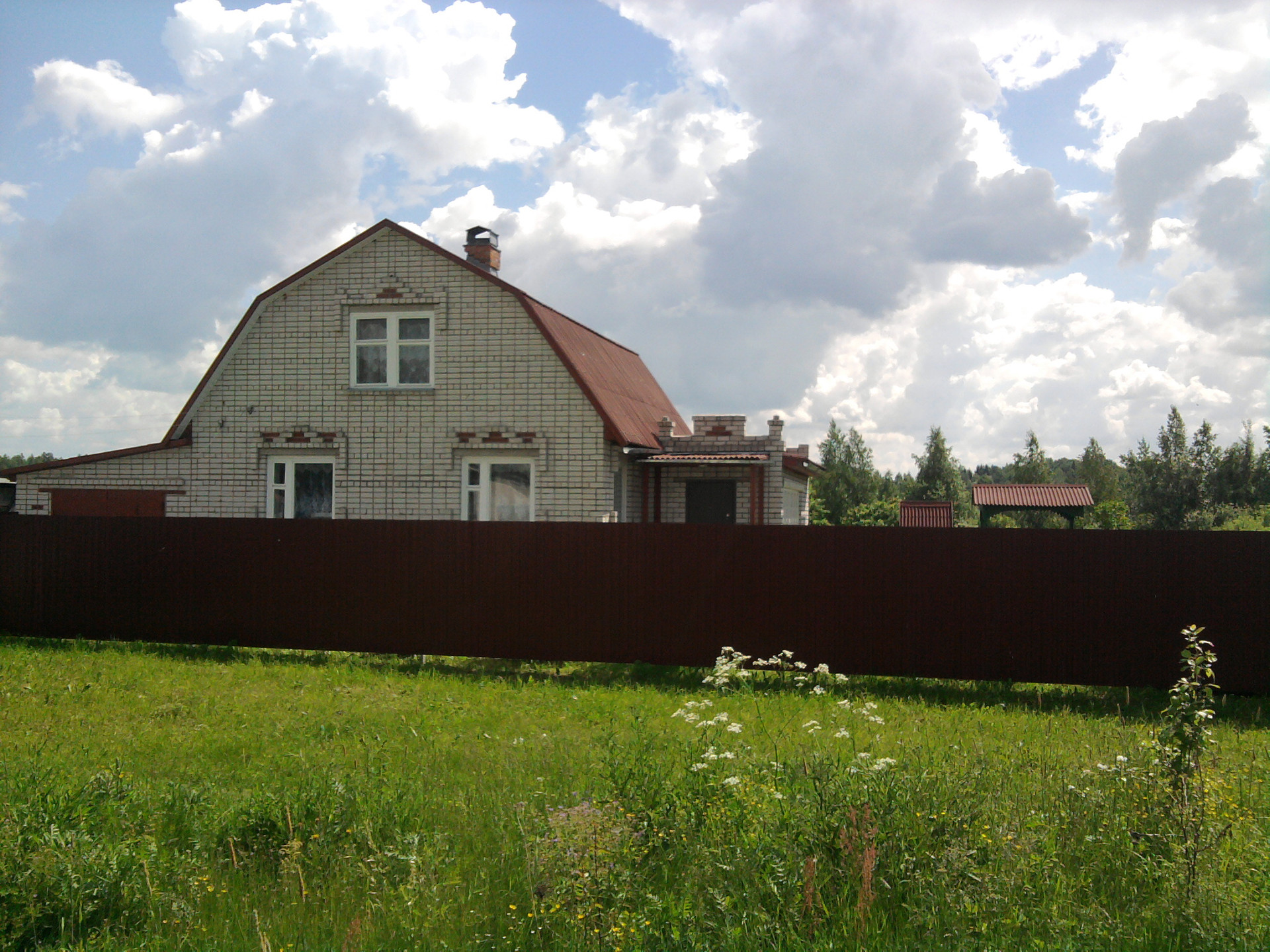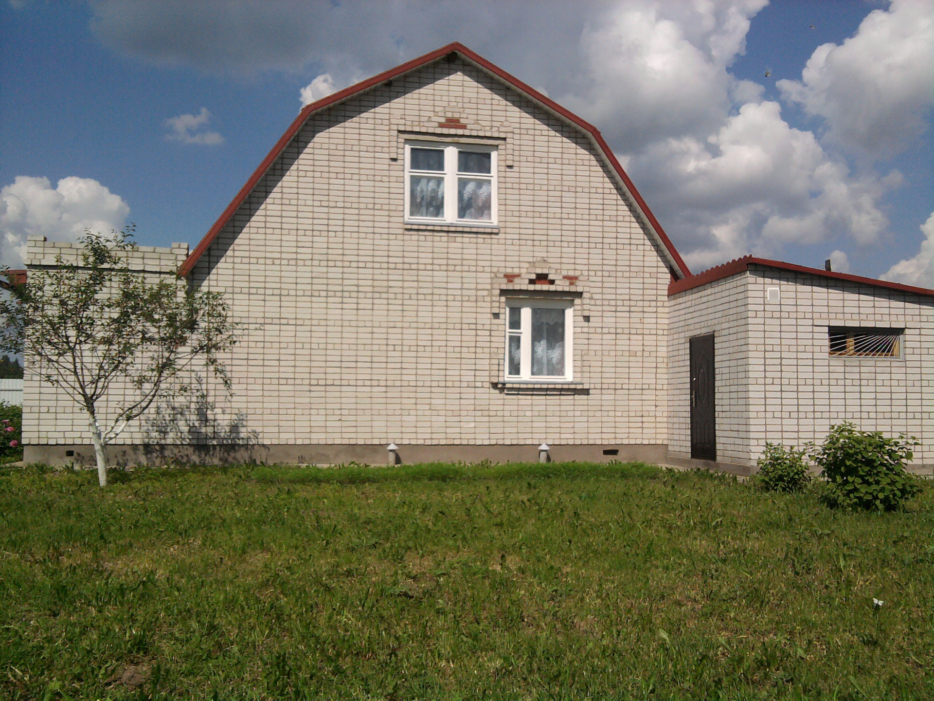 Продается жилой двухэтажный кирпичный дом, в 110 км от МКАД по Ярославскому шоссе в д. Новая. Общая площадь строения 130 кв.м., фундамент капитальный, бетонная лента. В доме 2 большие комнаты, кухня, санузел, прихожая, веранда, кирпичный гараж, кирпичное помещение из двух комнат для сауны с душем и комнатой отдыха.
