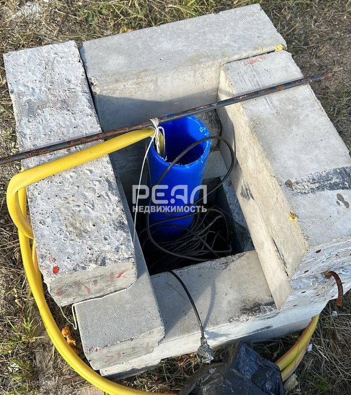 • Собственная скважина глубиной 23 метра. Насос. Вода в дом не заведена.