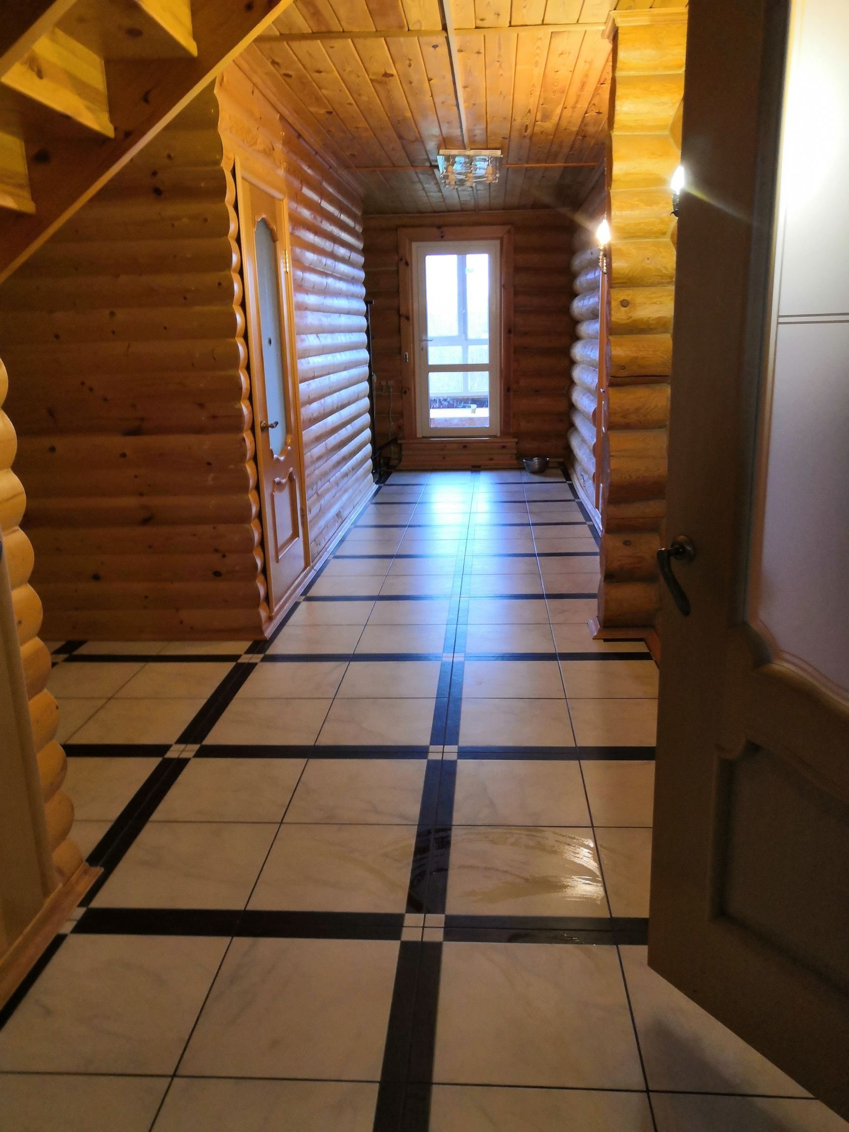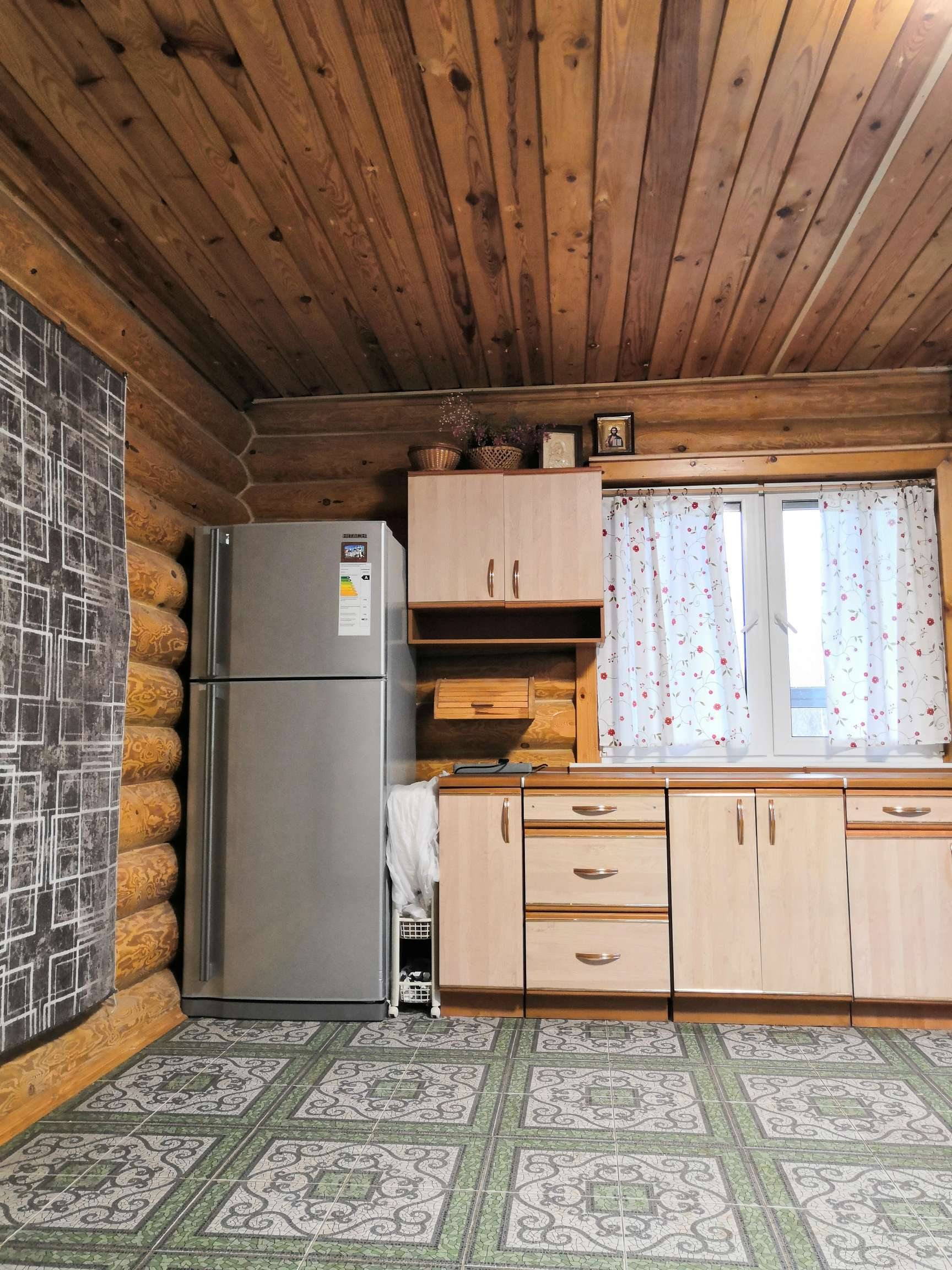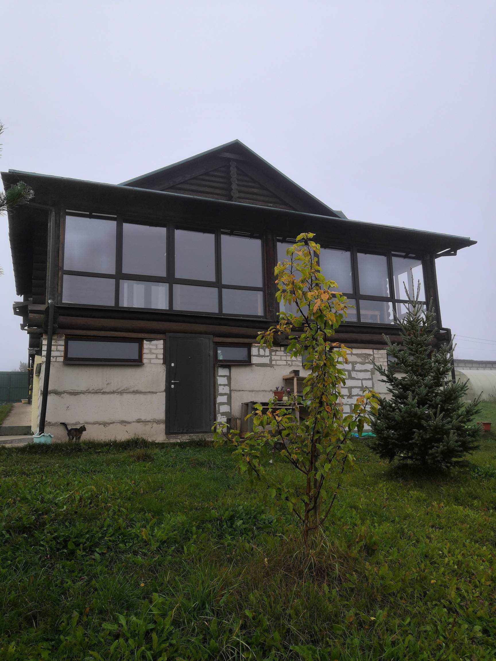 Высокий цокольный этаж построен из бетонных блоков. Используется для хранения заготовок и инструментов. Можно использовать как дополнительный этаж.