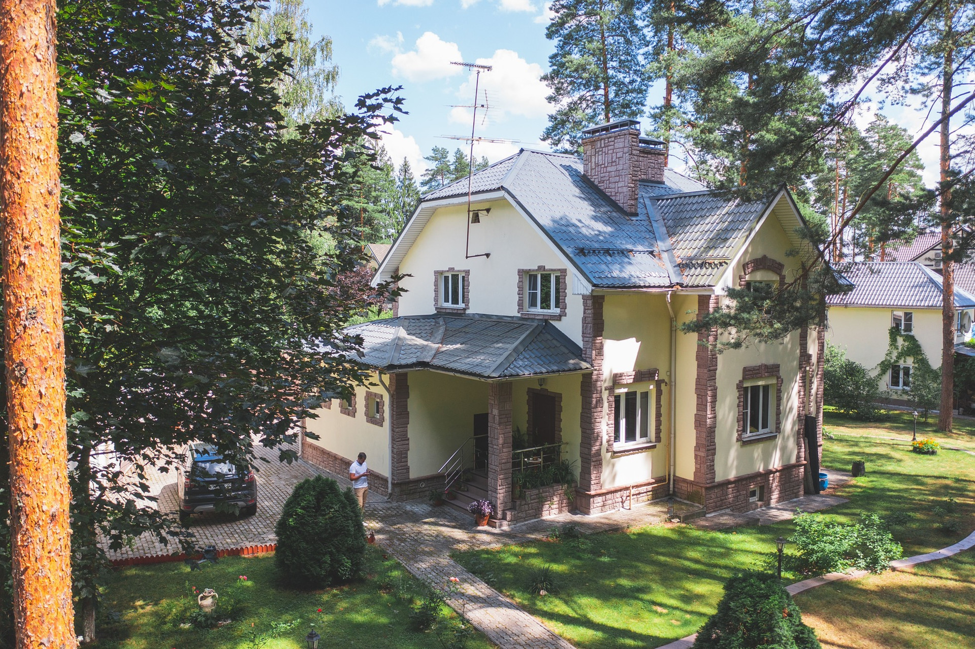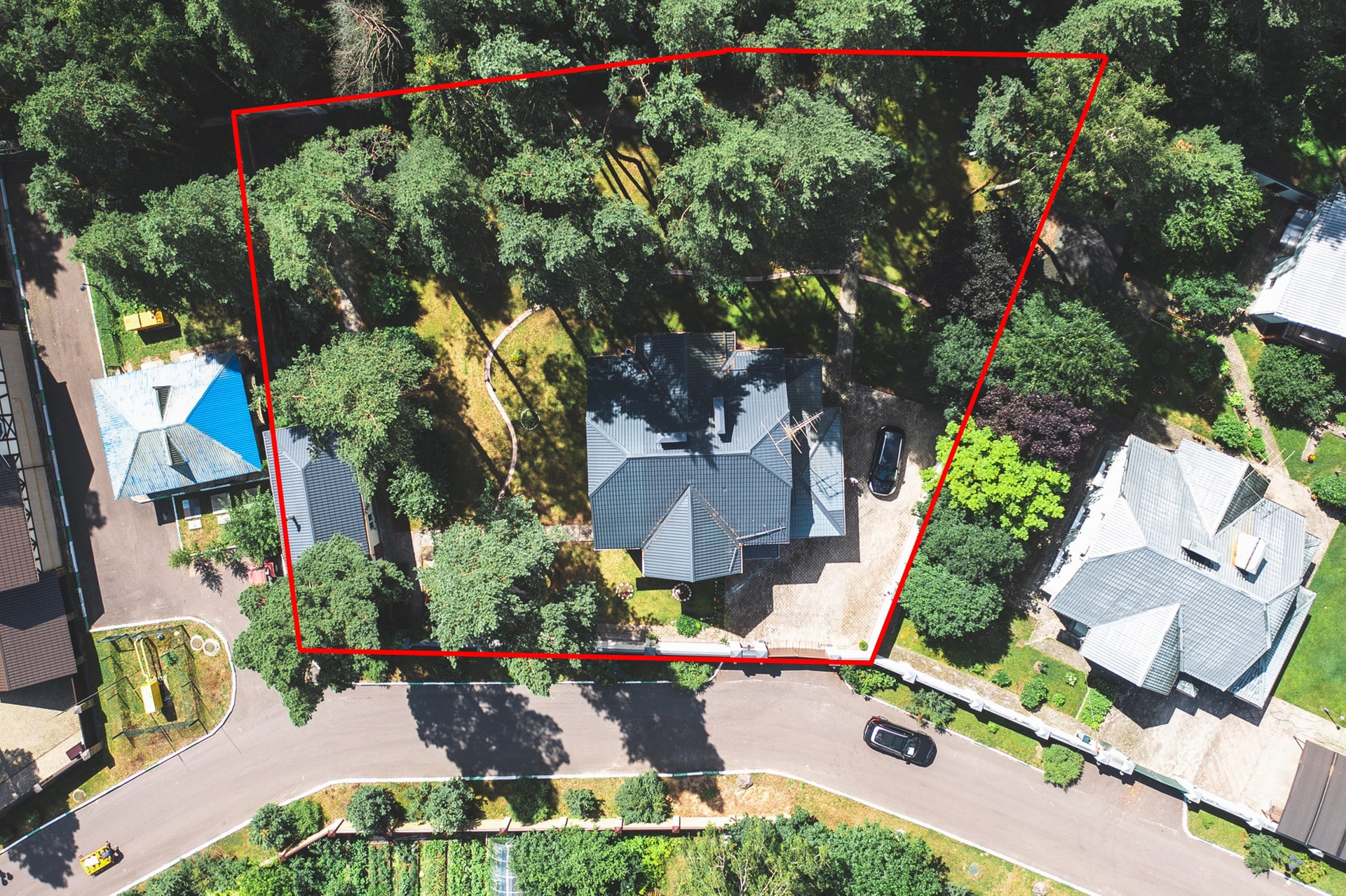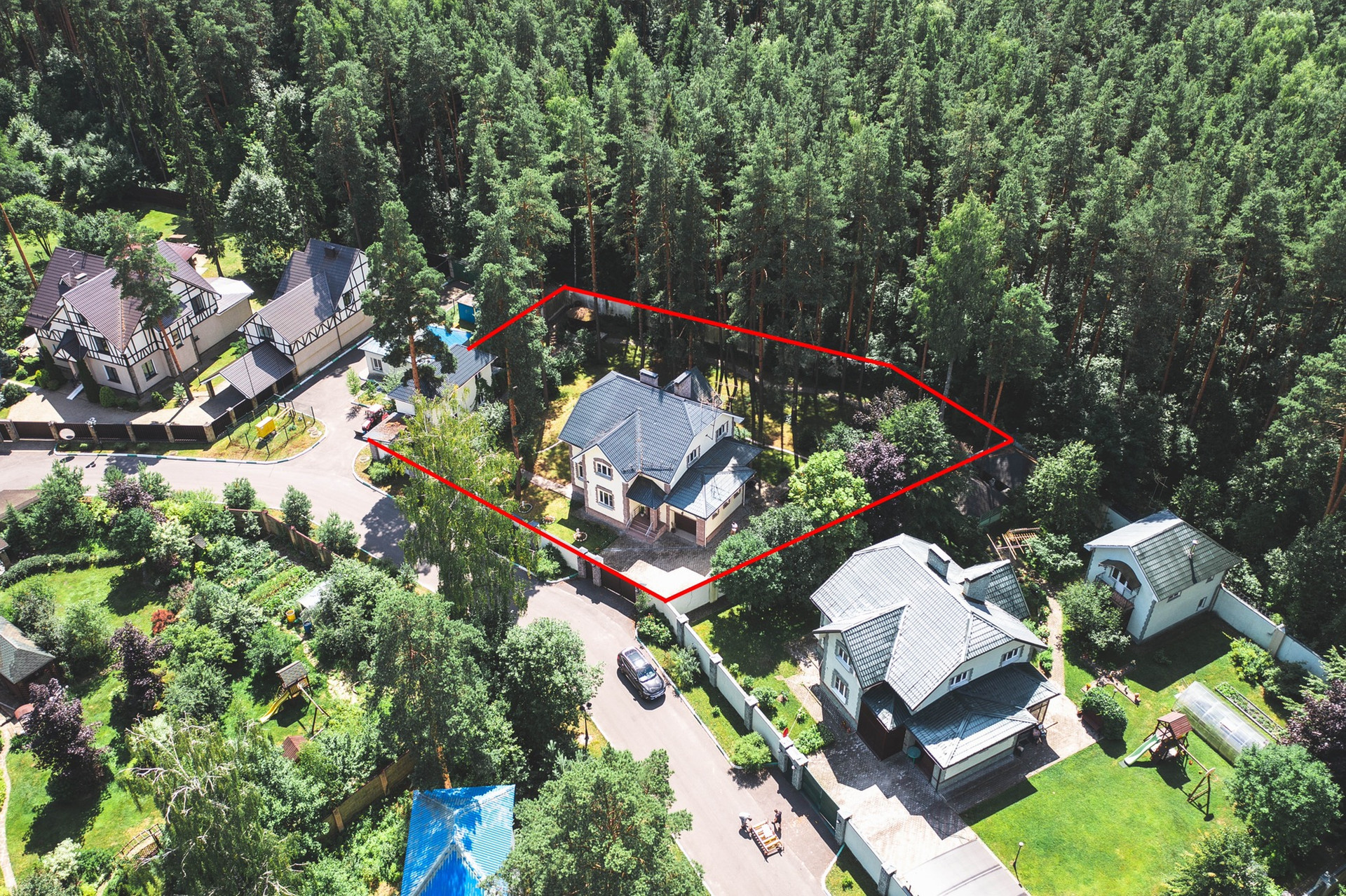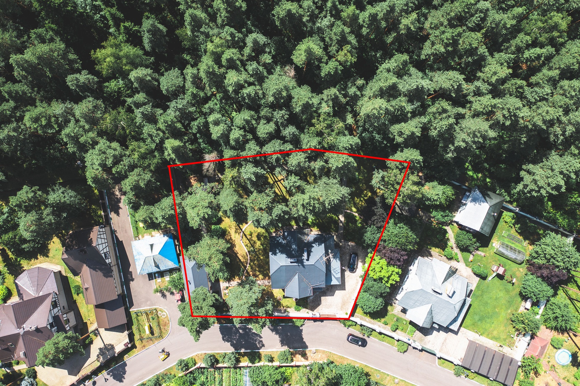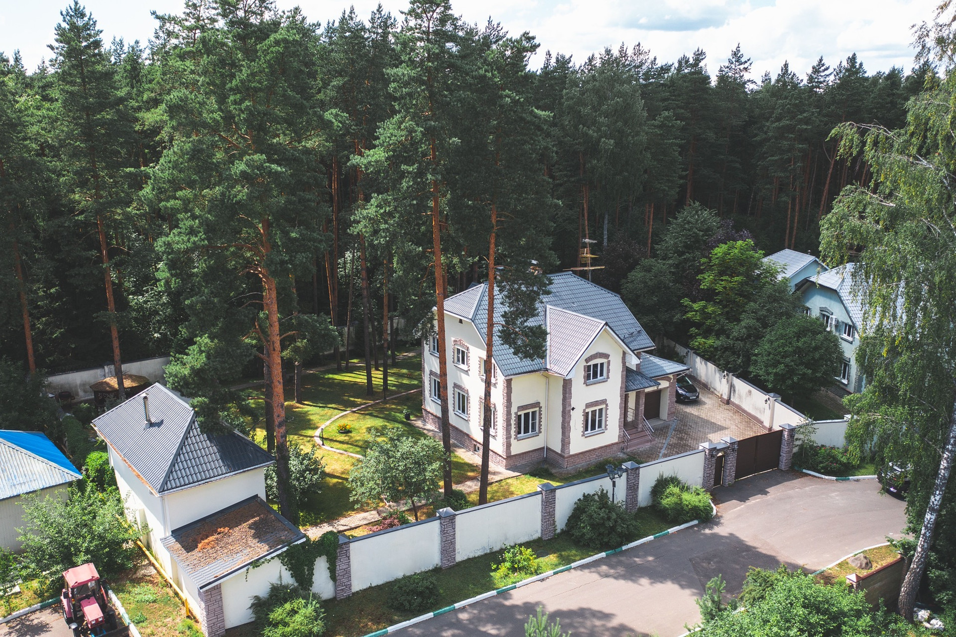 - Асфальтированный подъезд к дому, широкие уличные дороги в посёлке