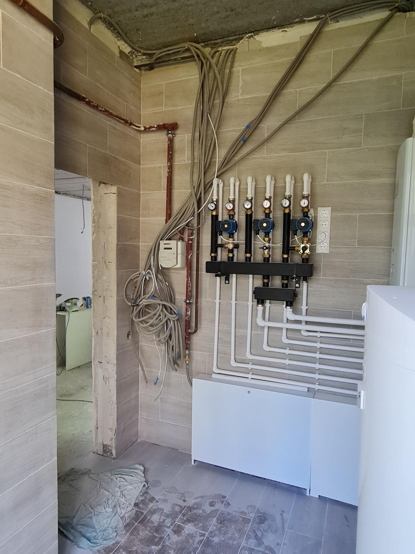 Разводка воды и канализации по всему дому, стоит две инсталляция Oli с отдельным клапаном для моющего средства.