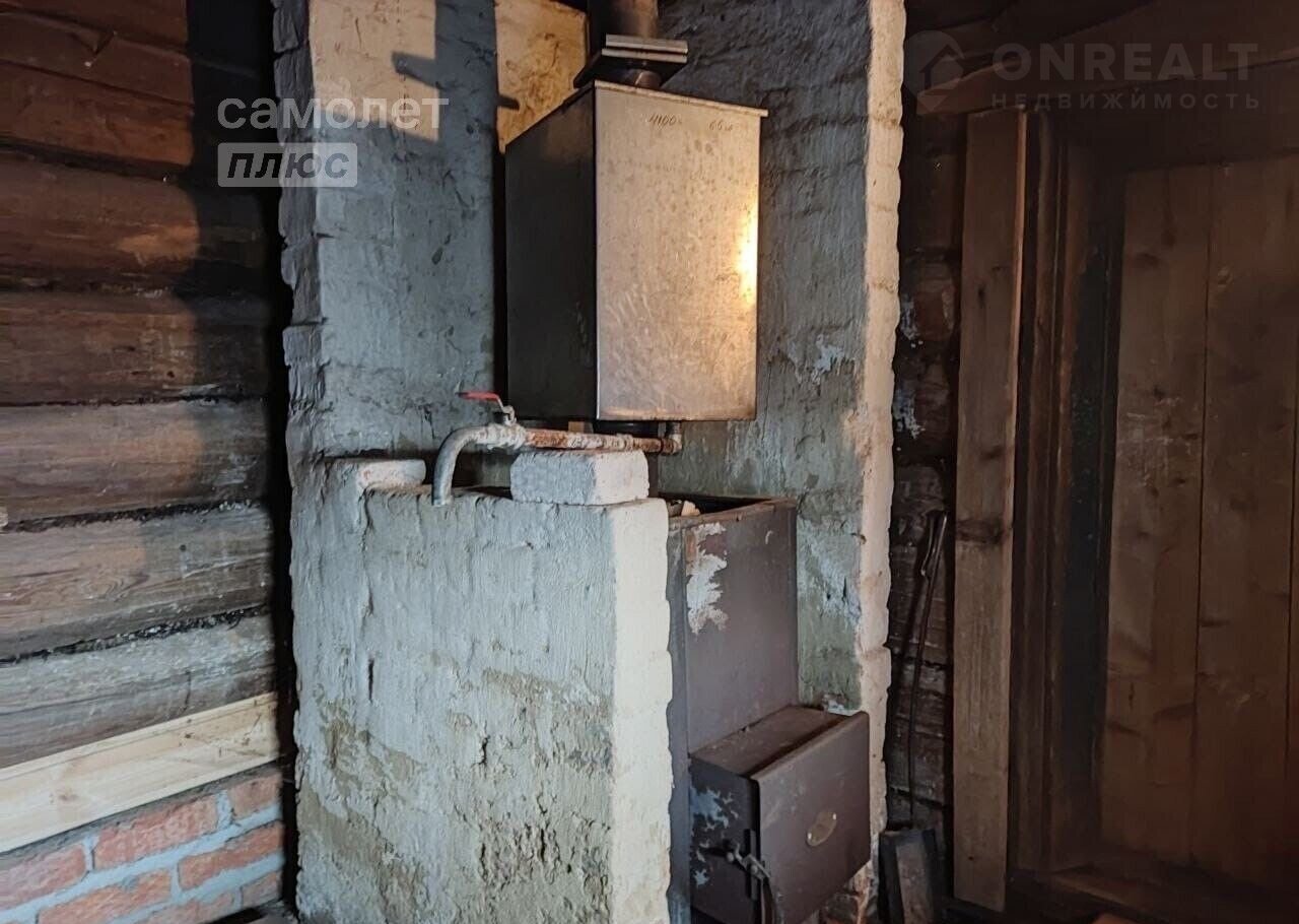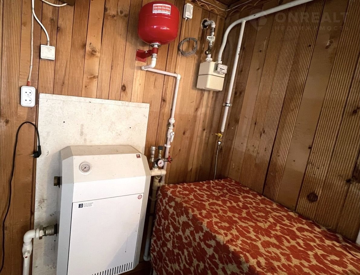 При входе в дом кухня. Установлен котел для отопления.