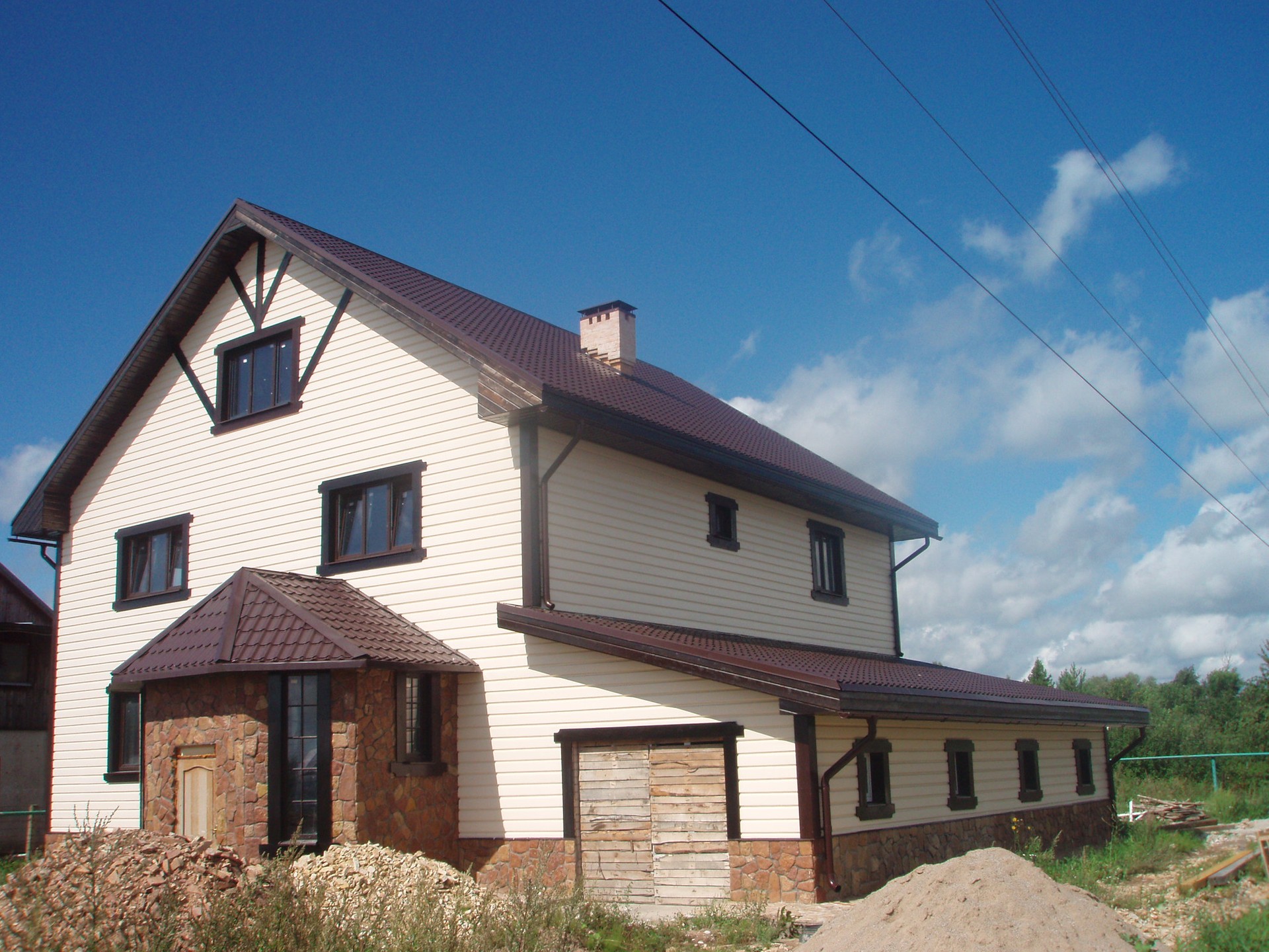 коттедж, 12x12 м, блочный, 2012 г.п., 2 этажа+ мансарда, 4 комнаты, идеальное состояние, без отделки и планировки, ГАЗ, ХВС, электричество, септик, мансардный этаж, стеклопакеты, участок 12 соток, земли населенных пунктов, для ИЖС, в собственности,  свободная планировка, веранда 6*6 м., пристроенный гараж на 2 машины, 434 кв.м.- площадь дома указана со всеми пристройками.