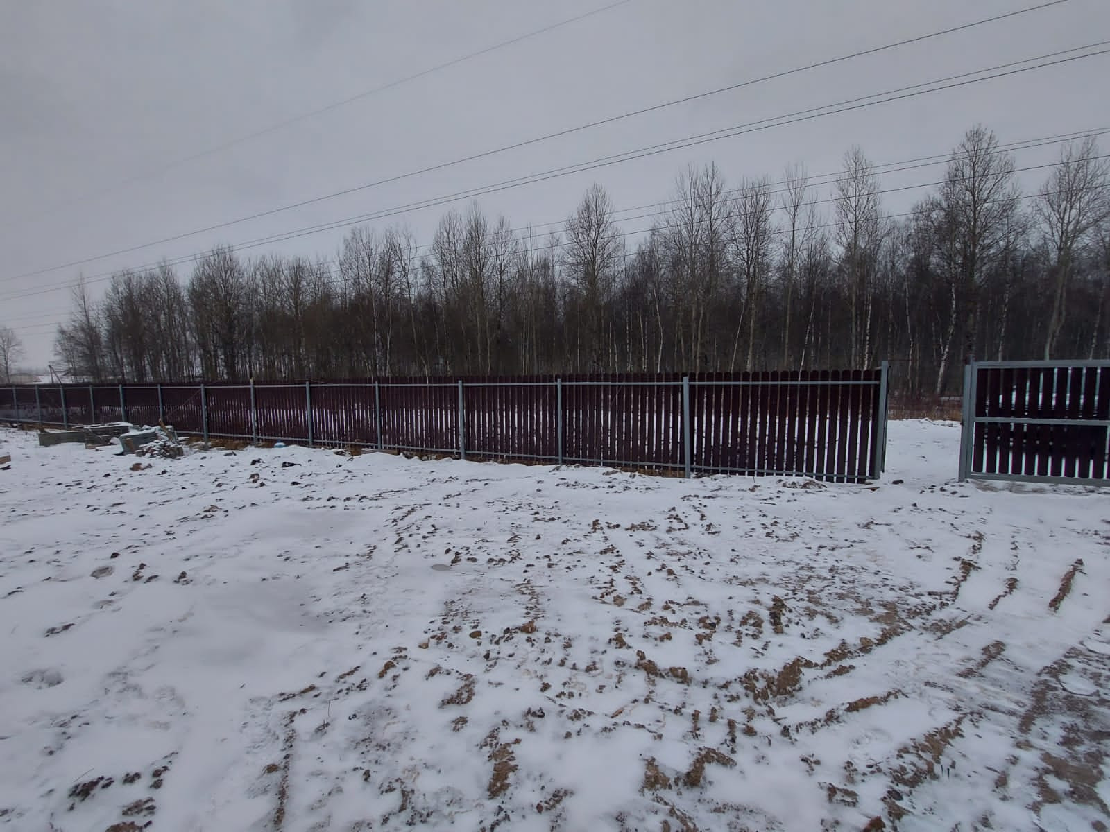 - Огорожен забором по периметру.