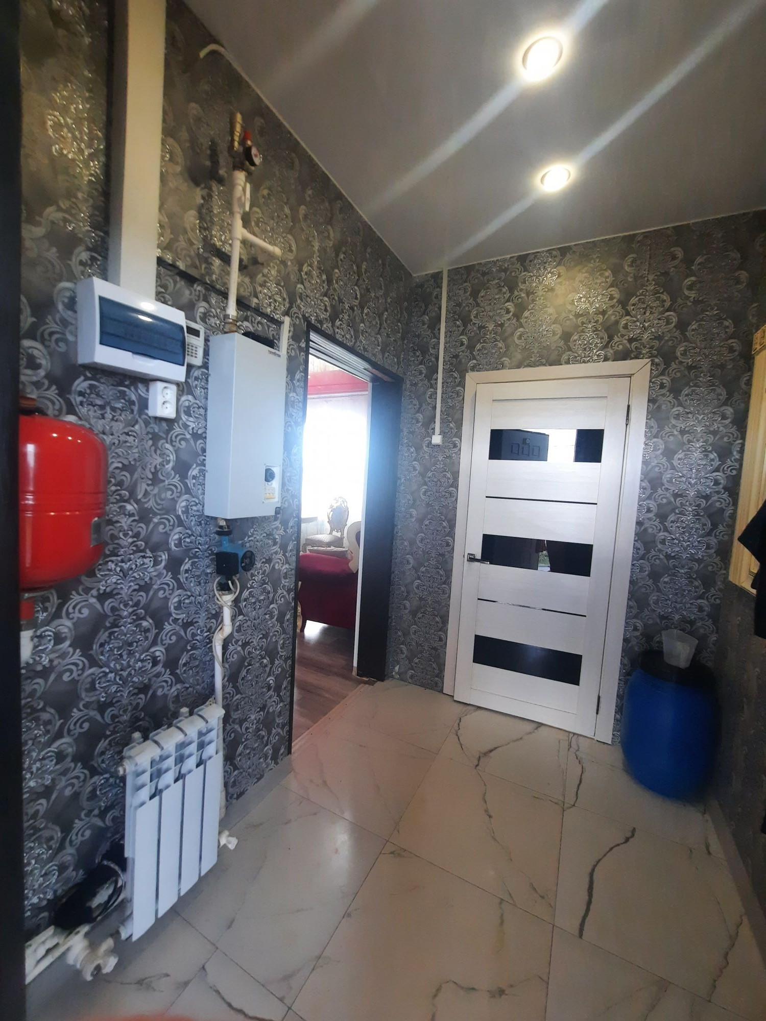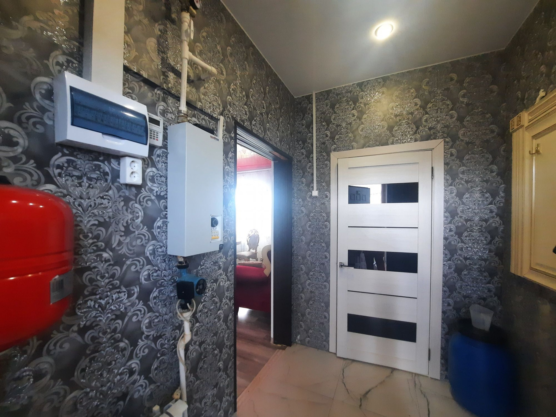 - отопление- электрический котёл на 12 кВт, полная разводка с радиаторами на 2 этажа;