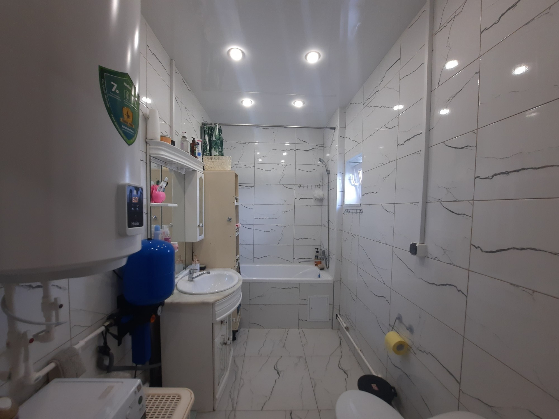 Сан.узел - совмещённый, качественный керамогранит.