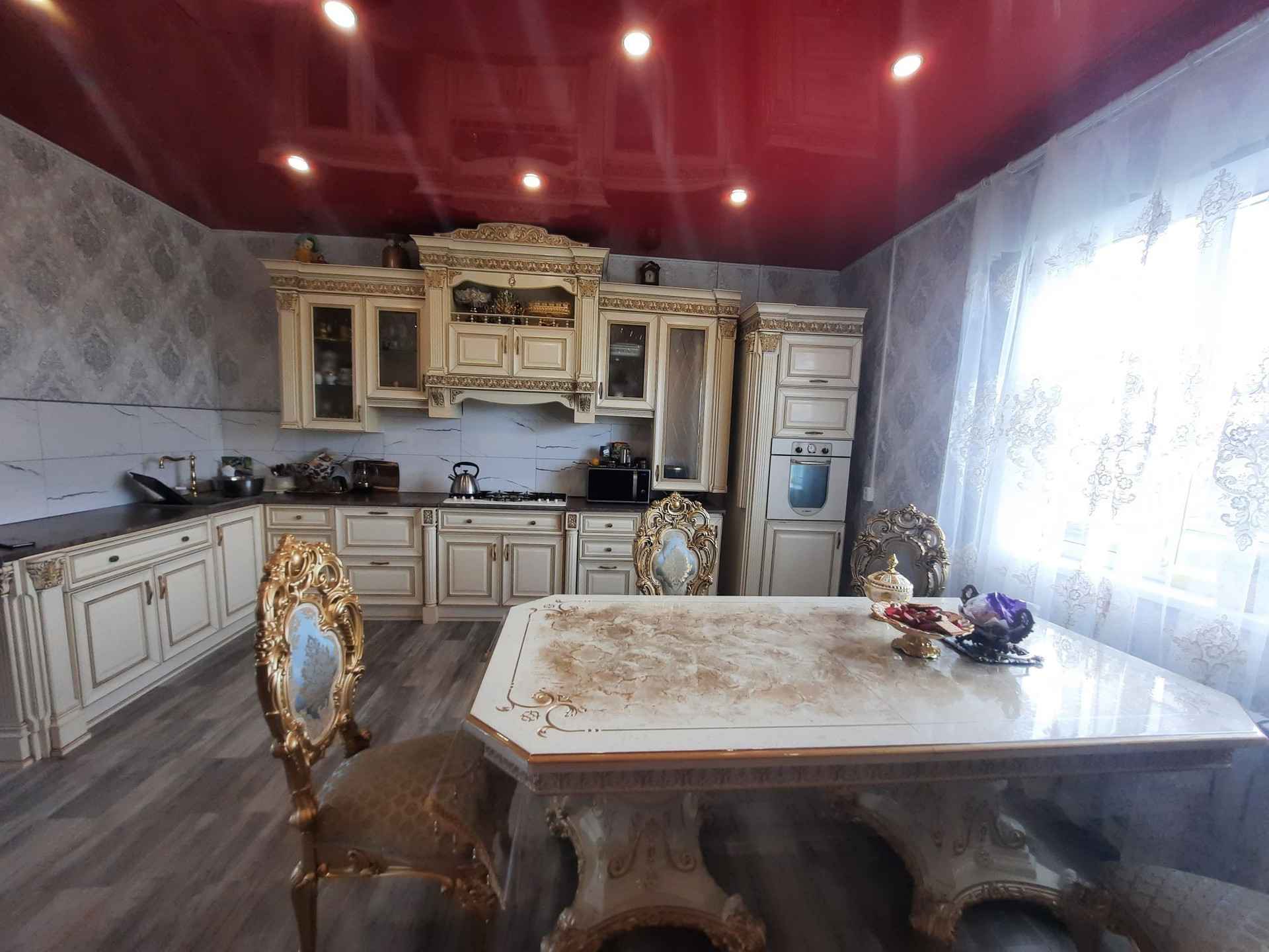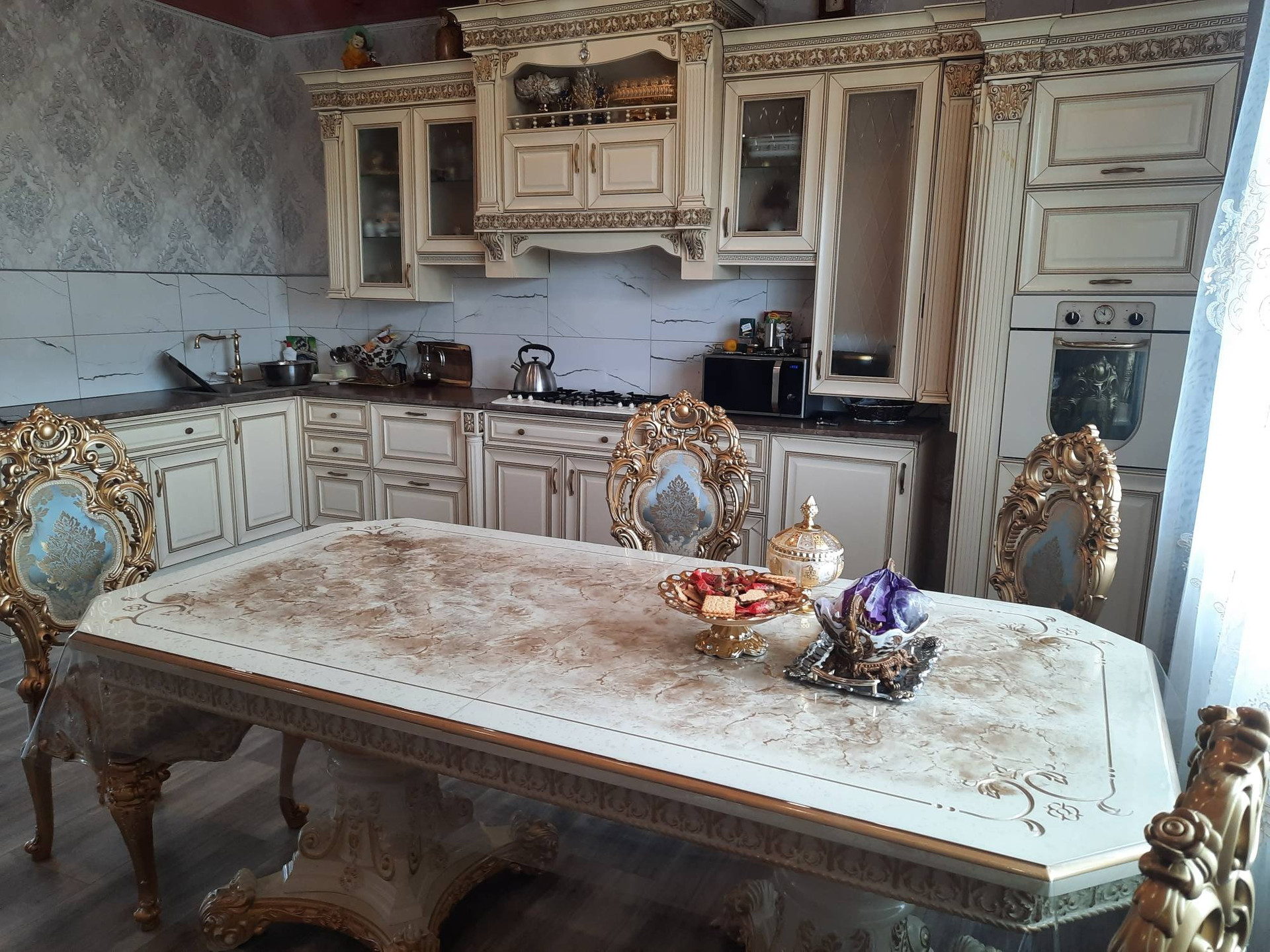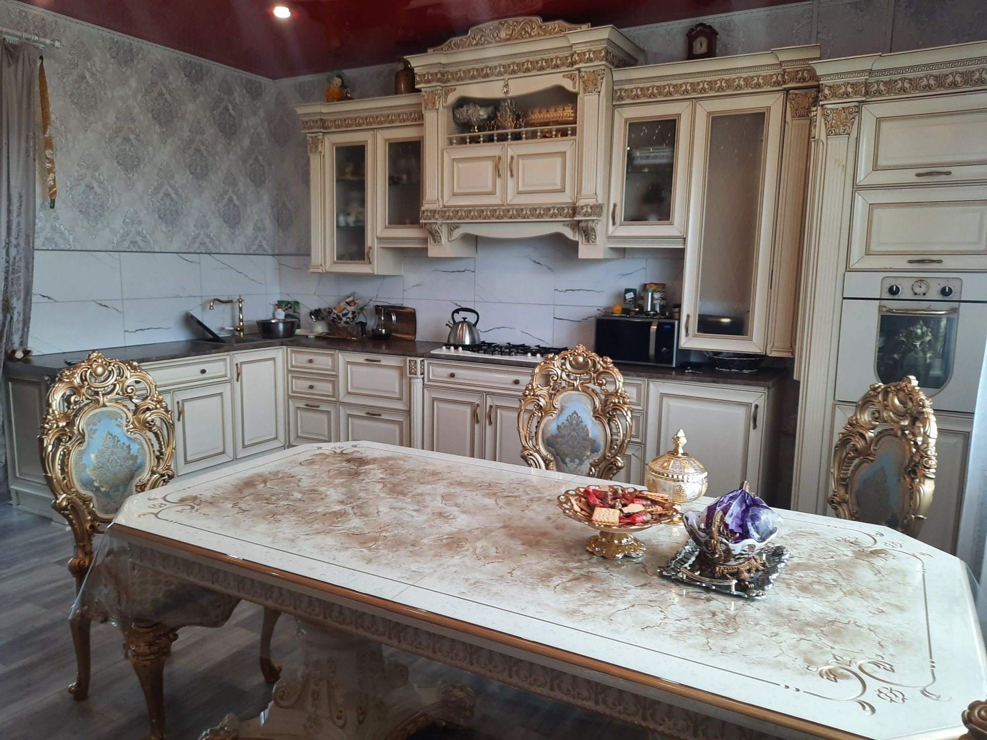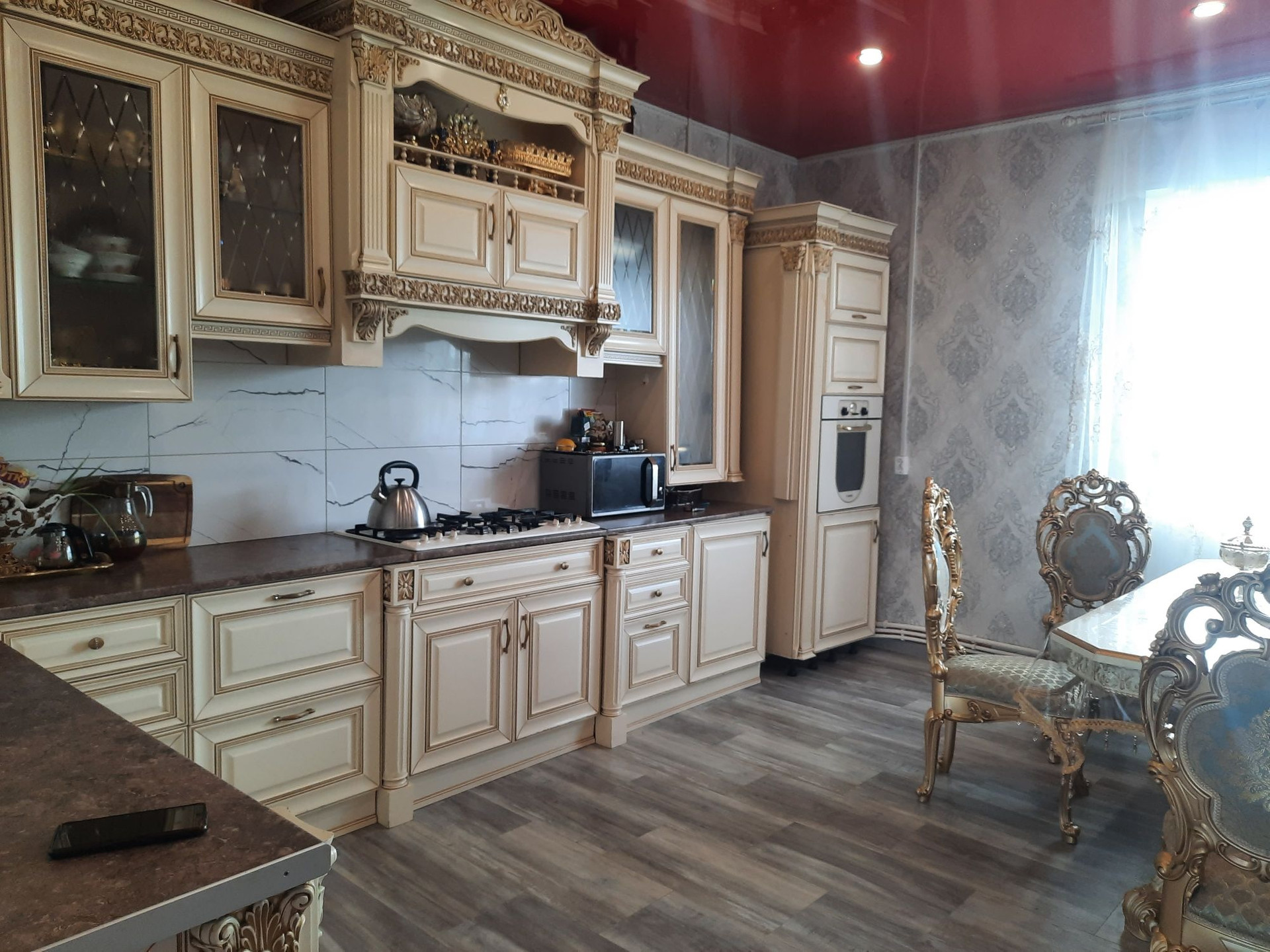 - кухонный гарнитур- Итальянский массив из натурального дерева, в комплекте со столом и стульями!