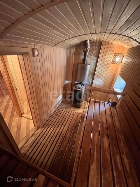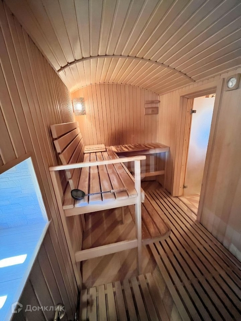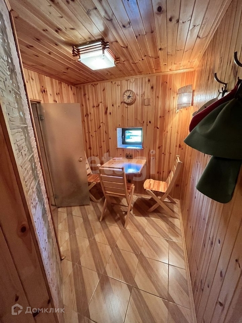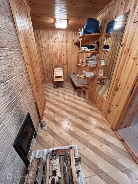 Банный комплекс в одном здании с гаражом, обит деревом. На полу плитка, система тёплых полов.