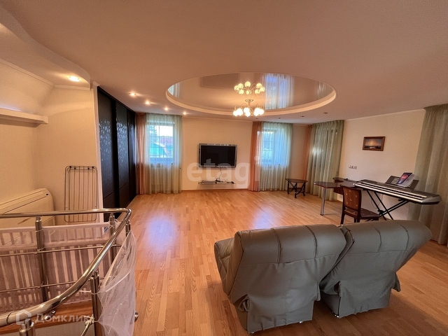 Цокольный этаж : спортзал, гардеробная, котельная, прачечная, комната отдыха. На полу плитка, система тёплых полов.