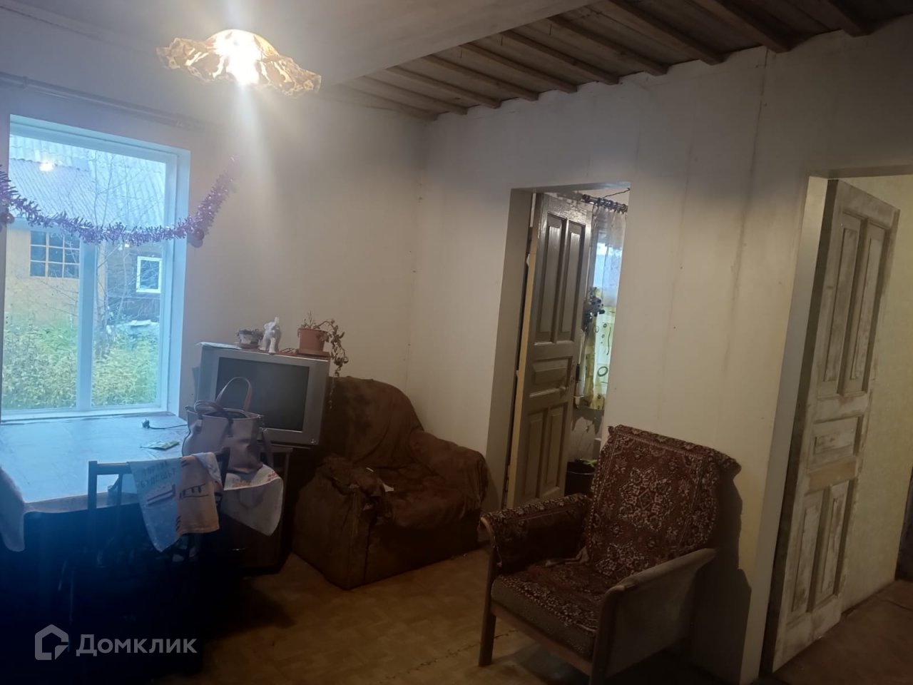 Дом из бревна,, отделан  вагонкой,  Две действующие печи,  З комнаты , веранда ,комната мастерская вход из дома