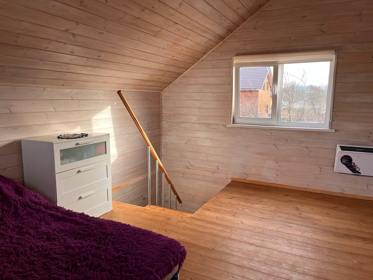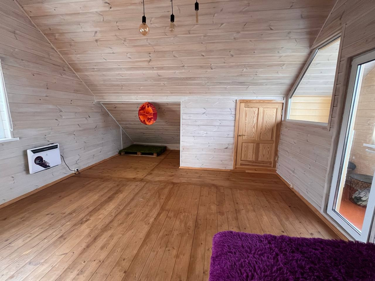 2 этаж: большая комната с высокими потолками, балкон 4м длинной.