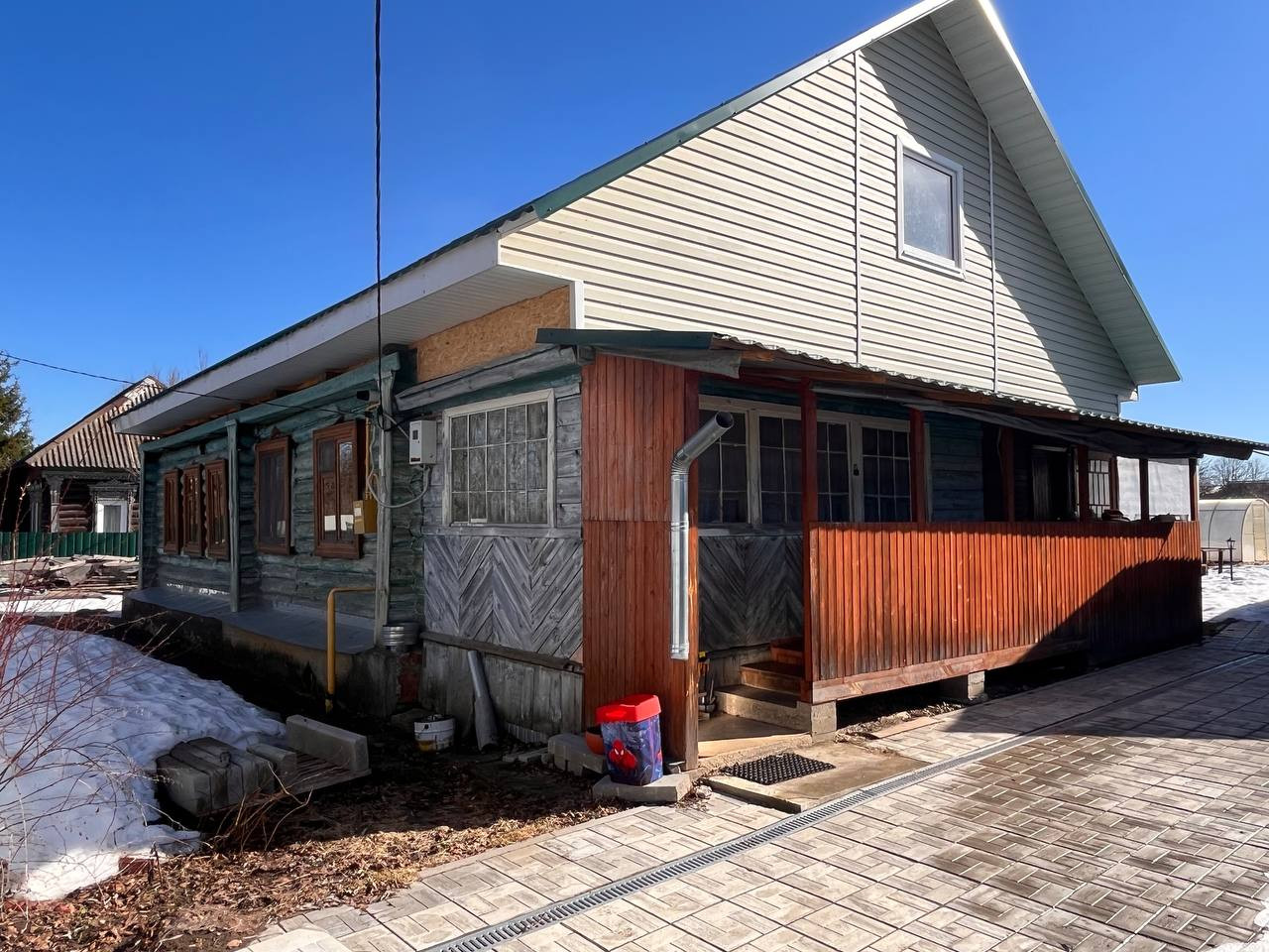 В 22 году сделана новая крыша и предусмотрена возможность сделать 2 этаж. Есть веранда 4,5 на 4 метра Большой коридор 6м на 3 м 2 террасы старые используются, как кладовка;