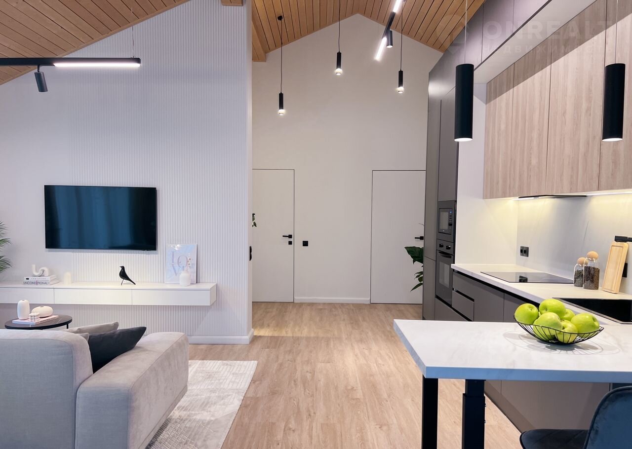 - Просторная кухня-гостиная с высокими потолками - 4 метра!