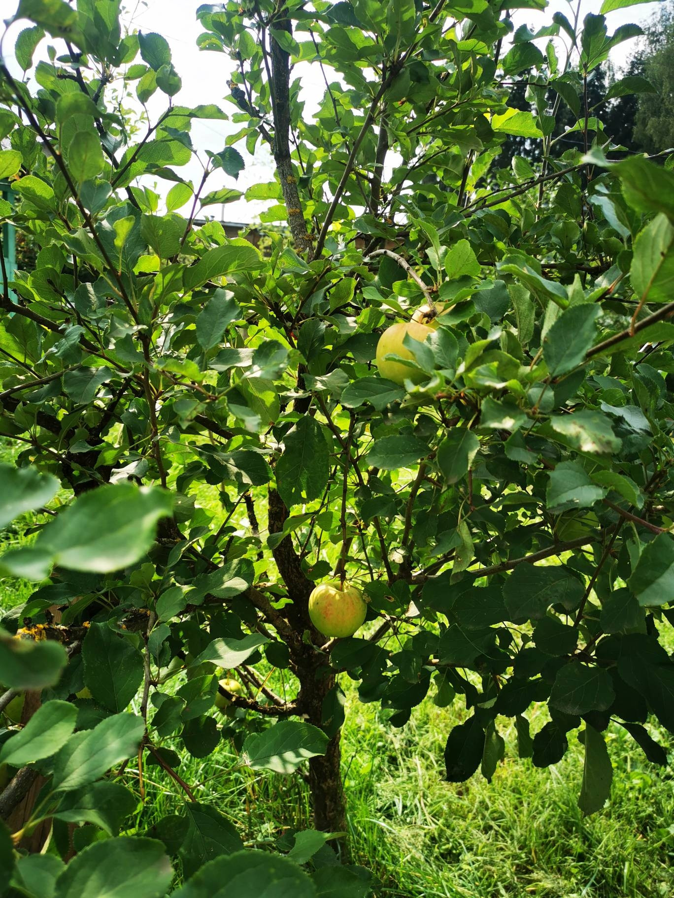 Есть несколько плодовых деревьев, сосна и ёлочка, которую можно и нужно украшать на Новый год.