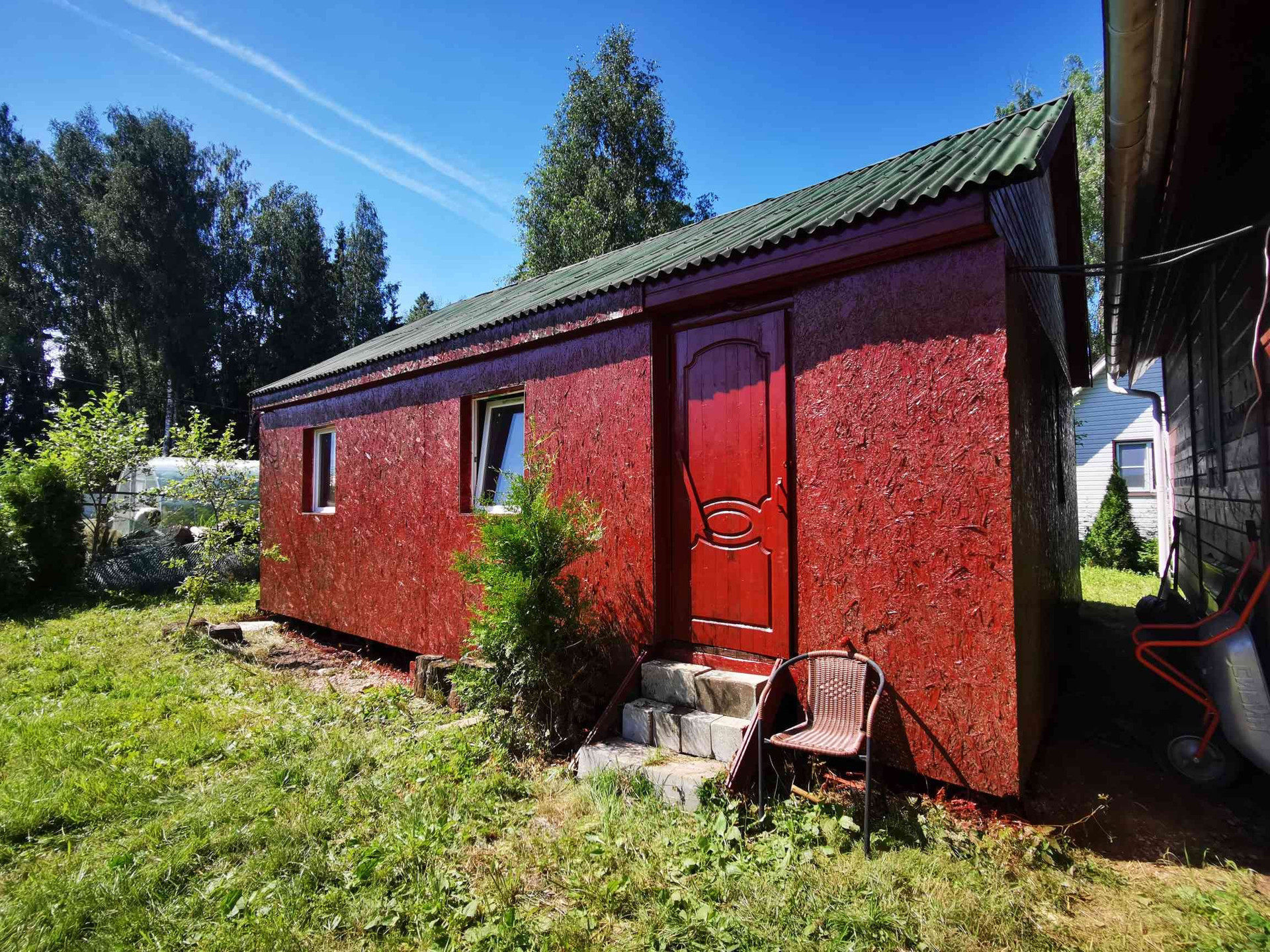 2. Рядом расположен гостевой дом, площадь 44,3 м2. Этот дом можно оборудовать и под мастерскую, и под баню, и непосредственно использовать как жилой дом для родственников, друзей, гостей. Кадастровый номер 50:09:0050525:1355. Одна жилая комната, есть печка, по лестнице подъём на жилую антресоль. Есть помещения под с/узел и кухню. Новая электрическая проводка. При небольших вложениях можно сделать дом для автономного проживания - завести воду в дом из колодца и вывод сточных вод в Септик.