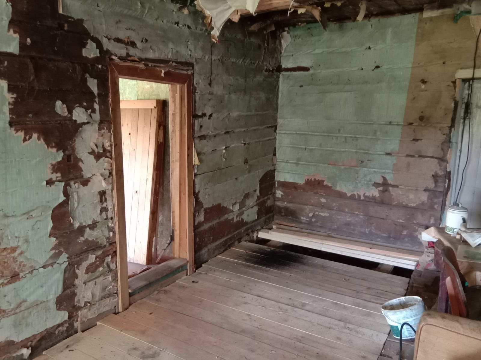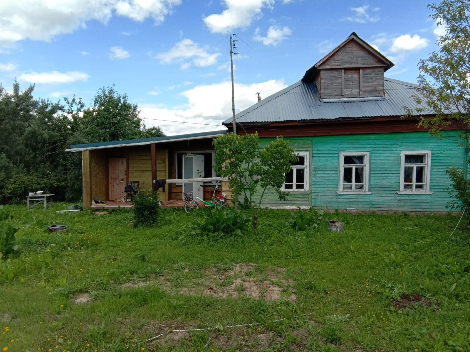 Обжитое место - старая деревня! Продаётся крепкий, старый бревенчатый дом(половина дома) и новая пристройка к нему с земельным участком. Пристройка новая, а внутри дома нужен косметический ремонт.   На участке имеются: новый металлический забор с воротами и калиткой, колодец, гараж, много яблонь разных сортов, облепиха, смородина чёрная и красная, поливочный пруд, свободное поле под посадку картофеля. Заведено и подключено электричество (газ из баллона, вода из колодца, туалет на улице). Дом и пристройка на кадастровом учёте не стоят. Но при желании можно поставить на учёт пристройку, как отдельное строение. Статус разрешенного использования ИЖС, при необходимости, можно получить при переоформлении, подав декларацию(процедура бесплатная). Возможно проживание с получением постоянной регистрации. От Москвы до дома есть асфальтированная дорога. От МКАД - 108 км по скоростному Новорижскому шоссе. Есть возможность выкупить прилегающий земельный участок, не дорого. С реальным покупателем возможен торг!